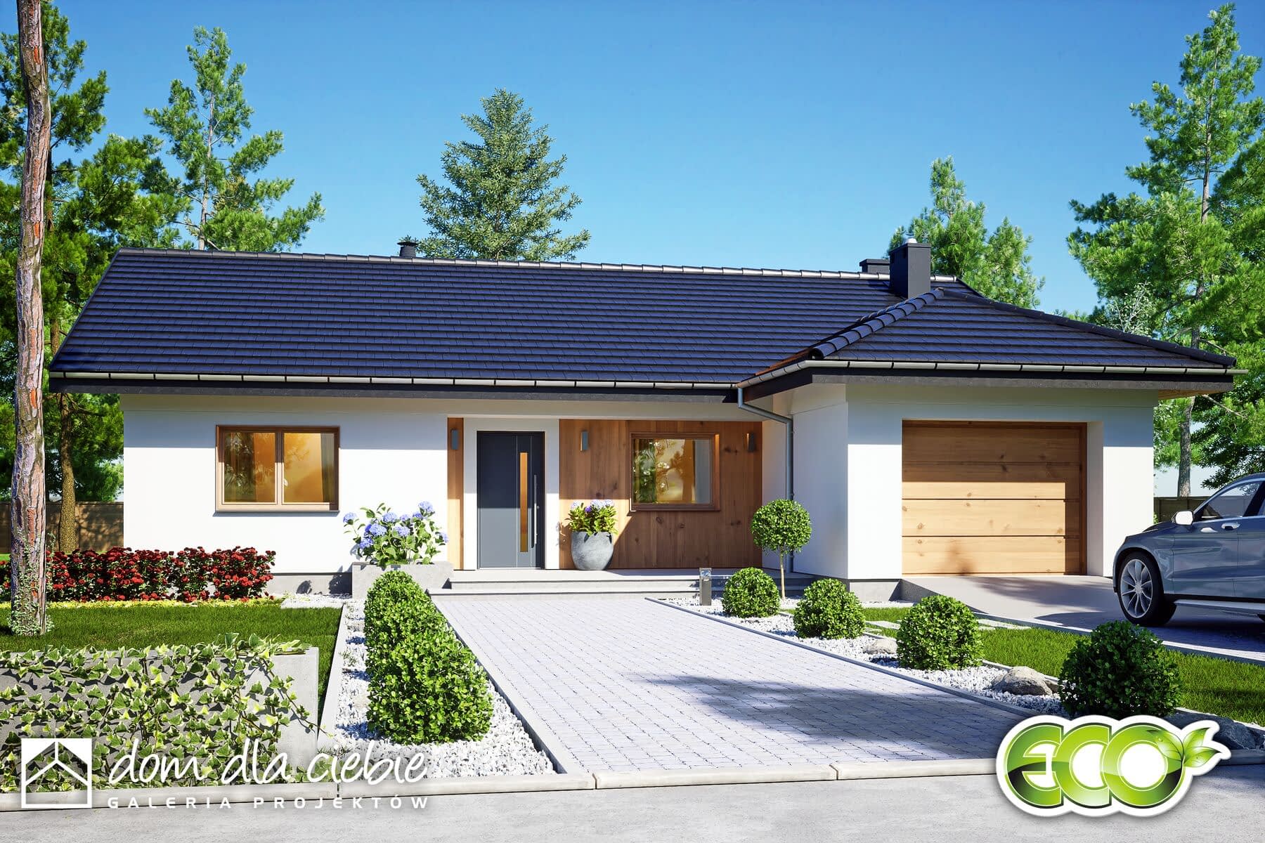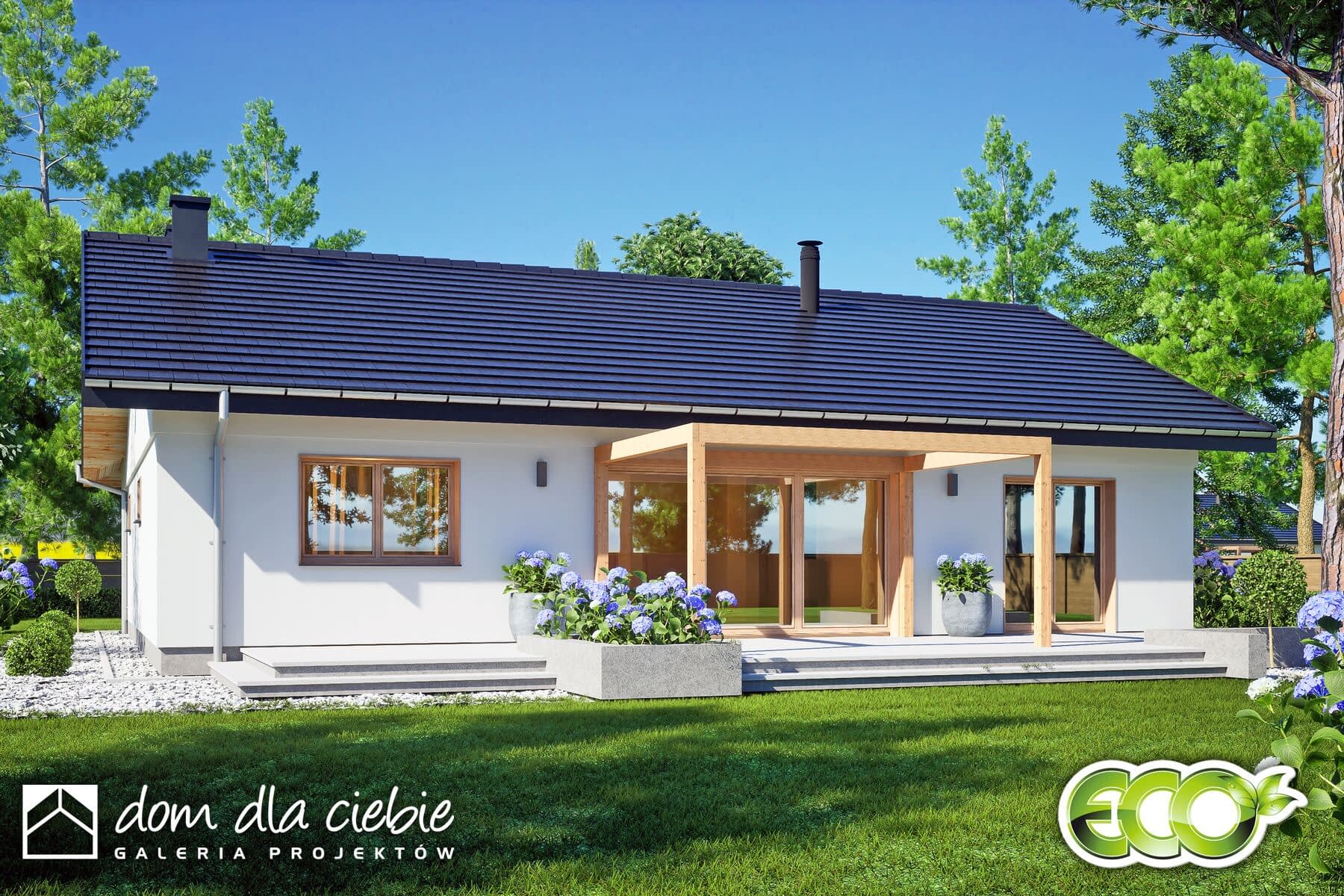 elewacje: tynk strukturalny, okładzina drewniana