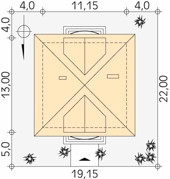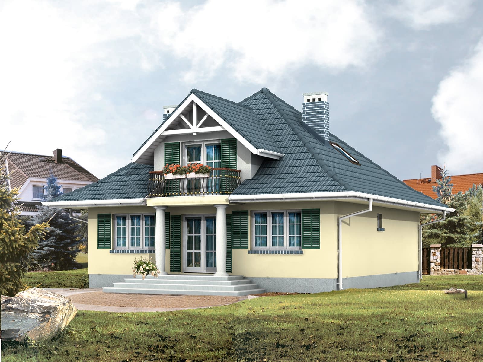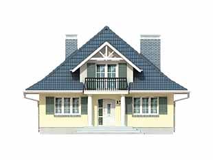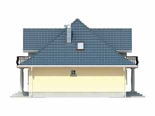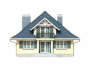 Dom jednorodzinny, niepodpiwniczony z użytkowym poddaszem. Budynek na planie kwadratu z klasycznym, kopertowym dachem. Pomimo niewielkich rozmiarów zawiera aż sześć pokoi, w tym gabinet do pracy na parterze.Konstrukcja