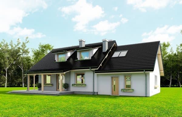 Projekt domu Bryza 4 to kolejna wersja bardzo popularnego projektu z serii Bryz. Dom jest całoroczny, jednorodzinny, przeznaczony do zamieszkania dla 4-6 osobowej rodziny, parterowy z użytkowym poddaszem. Prosta bryła budynku, przekryta jest dwuspadowym dachem. Do głównej bryły dobudowano część garażową z podwójnym garażem. Architektura domu to połączenie nowoczesnych materiałów i kolorystyki z tradycyjną formą budynku. Dzięki temu dom doskonale wkomponuje się w dowolne otoczenie - zarówno podmiejskie ciasne przedmieścia, jak i luźniejszą przestrzeń. Wnętrze domu podzielono na część dzienną na parterze i sypialnie na poddaszu. Na parterze, prócz salonu z kuchnią i holem (z zabiegowymi schodami) zaprojektowano także dodatkowy pokój - na przykład gabinet, wygodną łazienkę, kotłownię i dwustanowiskowy garaż, z pomieszczeniem gospodarczym. Na poddaszu mamy trzy sypialnie z łazienką, oraz strych. Strych w projekcie traktowany jest jako przestrzeń nieużytkowa, ale może on być łatwo zaadaptowany na cele użytkowe. Dzięki temu zyskamy dodatkowy pokój, lub dwa mniejsze pokoiki. Dom ma prostą konstrukcję, jest łatwy z budowie - a przez to niedrogi. Dzięki zwartej bryle można w nim uzyskać dobre parametry energooszczędności. Dodatkowym atutem budynku są dwa zadaszenia tarasu narożnego - rzecz nie do przecenienia w słoneczne dni, jak też przy opadach. Zapraszamy do zapoznania się z pełną ofertą pracowni MG Projekt: Bryza, Bryza 2, Bryza 3, Bryza 5 (NF 40) , Bryza 6 (MDM).