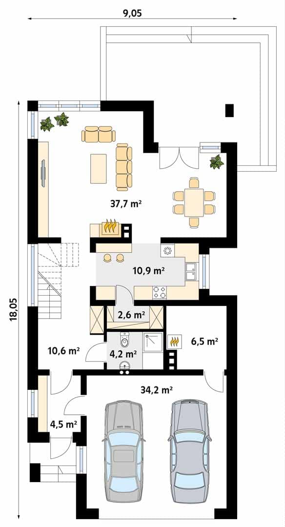 - Szerokość domu9.05 m