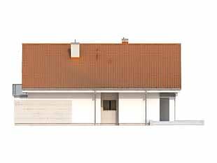Dom z dwustanowiskowym garażem na dosyć wąską działkę. Na parterze, oprócz części dziennej, mamy spiżarnię dostępną z kuchni i łazienkę. Na poddaszu zaprojektowano trzy sypialnie, łazienkę z pralnią oraz dwie garderoby.Konstrukcja