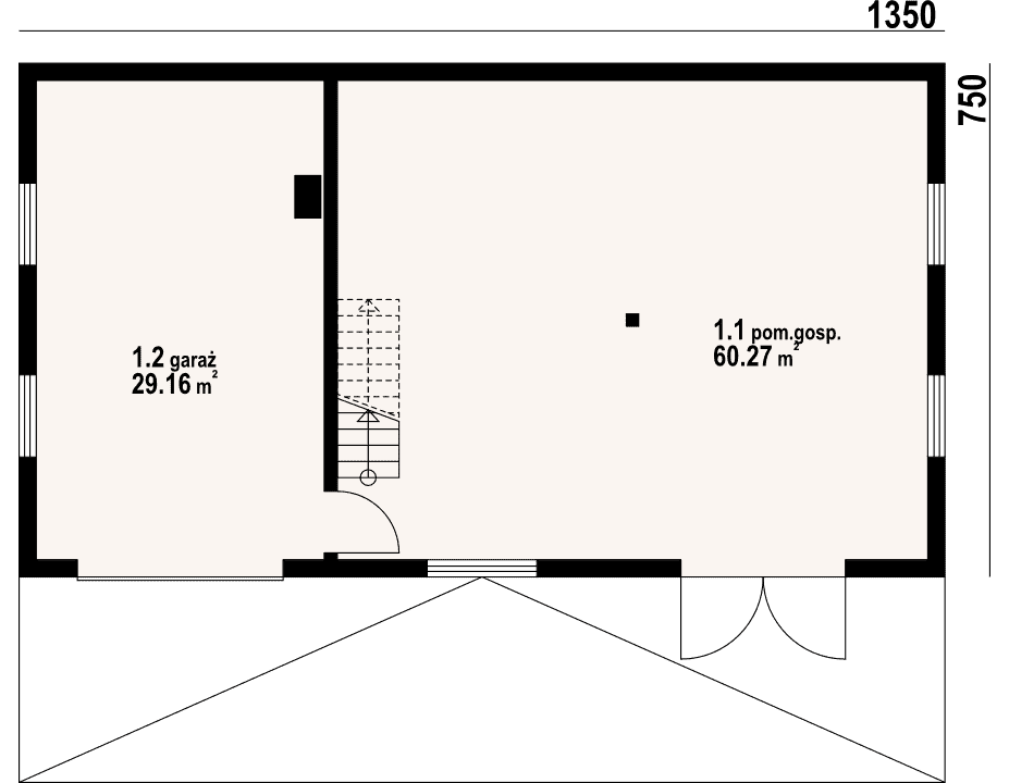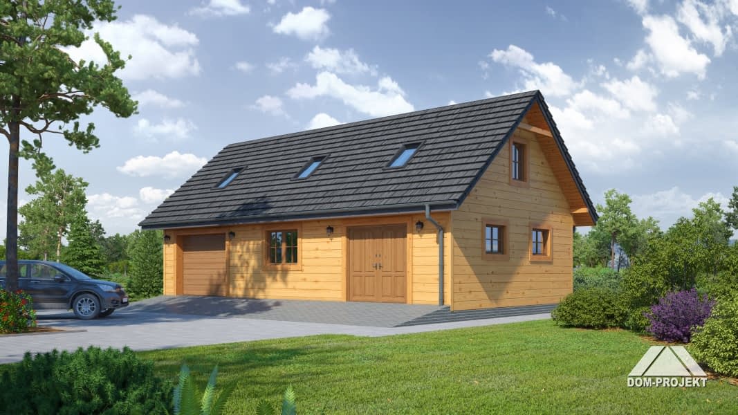 Budynek gospodarczy z garażem i przestrzenią gospodarczą na parterze i na poddaszu.Rzuty