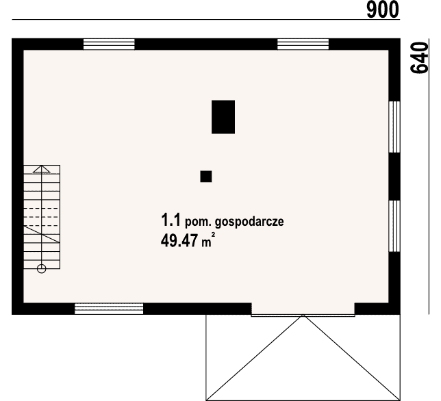 Budynek gospodarczy. Na parterze i na poddaszu pomieszczenia gospodarcze.Rzuty