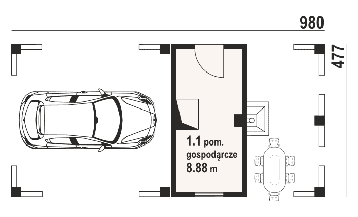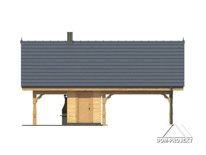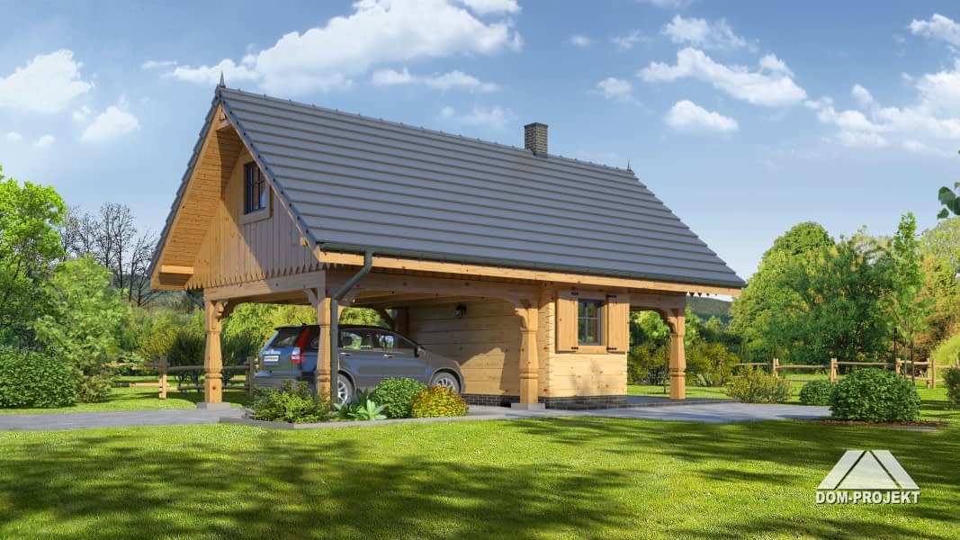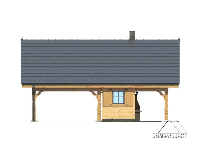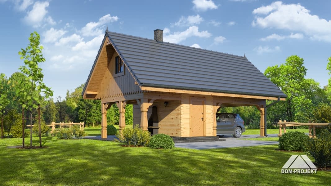 Budynek gospodarczy z wiatą na samochód i grillem zewnętrznym.Rzuty