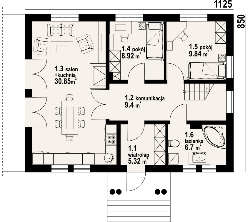 opisu architektonicznego zawierającego m.in. opis przyjętych rozwiązań, zestawienia powierzchni (użytkowej, zabudowy, netto), kubatury oraz powierzchni poszczególnych pomieszczeń.