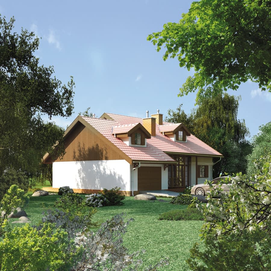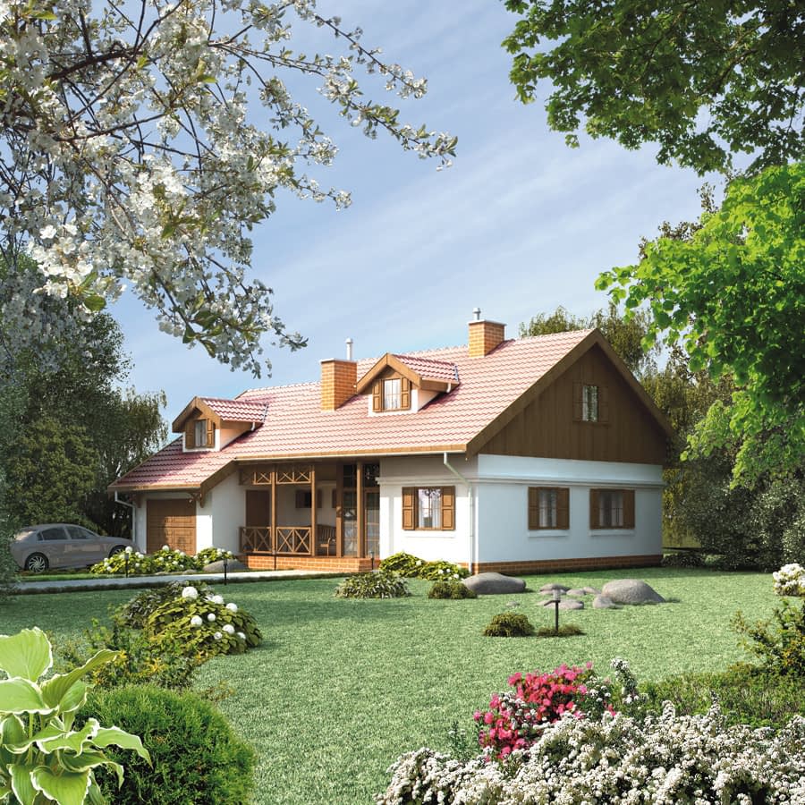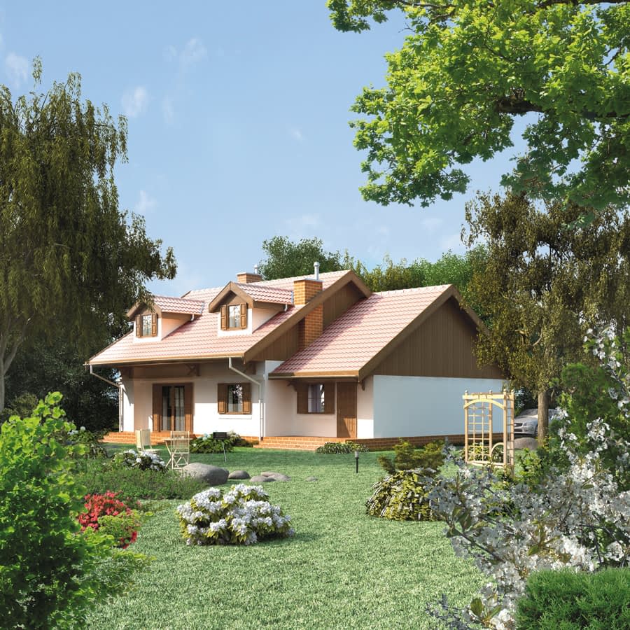 - elewacje (frontowa, dwie elewacje boczne, ogrodowa) – dokładny wygląd domu z każdej strony.