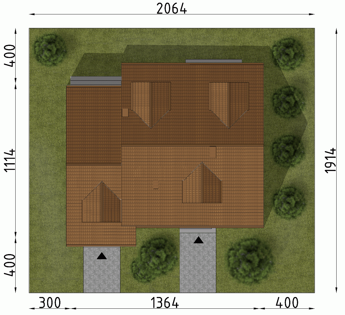- rzut dachu – wymiary dachu, kąt nachylenia wszystkich połaci dachu, rozmieszczenie okien połaciowych, lukarn, kominów.