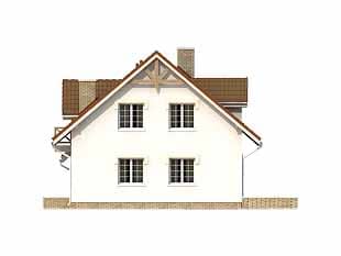 Dom jednorodzinny z użytkowym poddaszem i dwustanowiskowym garażem. Na parterze zaprojektowano część dzienną i zaplecze z kotłownią i pomieszczeniem pomocniczym. na poddaszu znajdują się trzy sypialnie, łazienka oraz garderoba.Konstrukcja