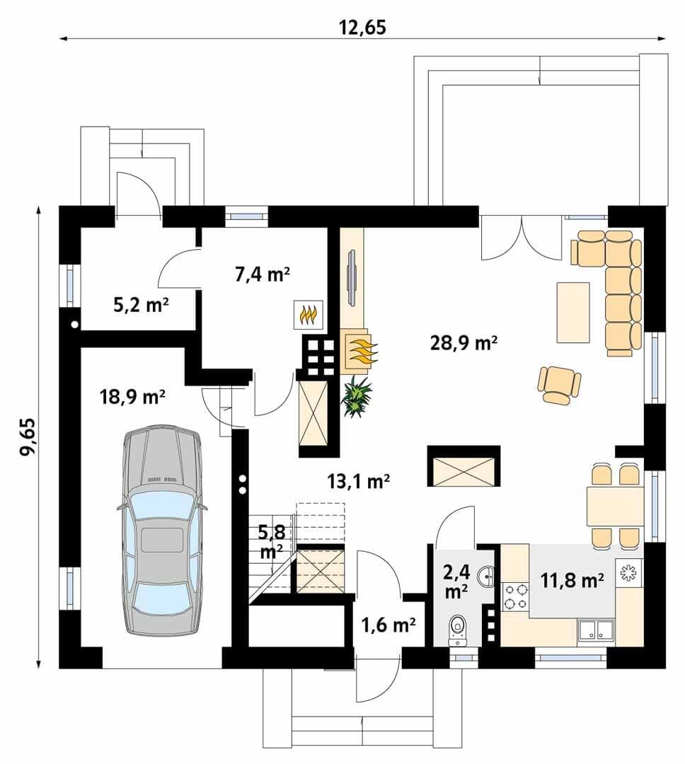 - Szerokość domu12.65 m