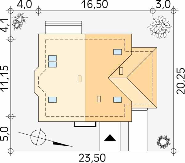 - Minimalne wymiary działki20.25 x 23.05m