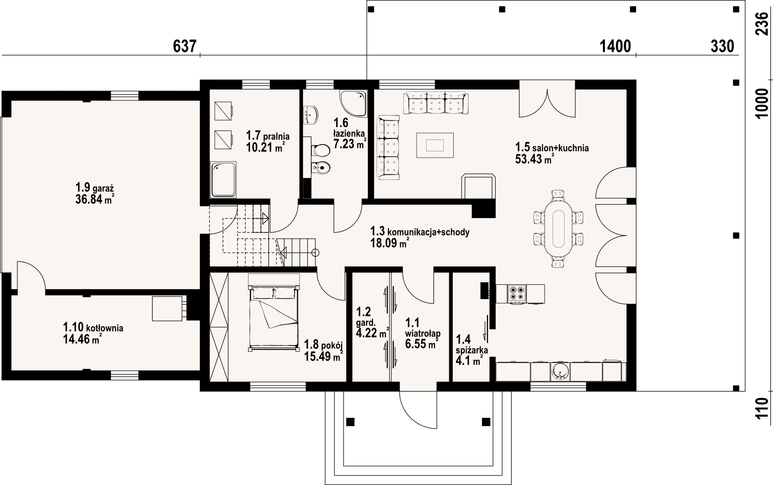 - 1.5 - salon+kuchnia53.43 m²