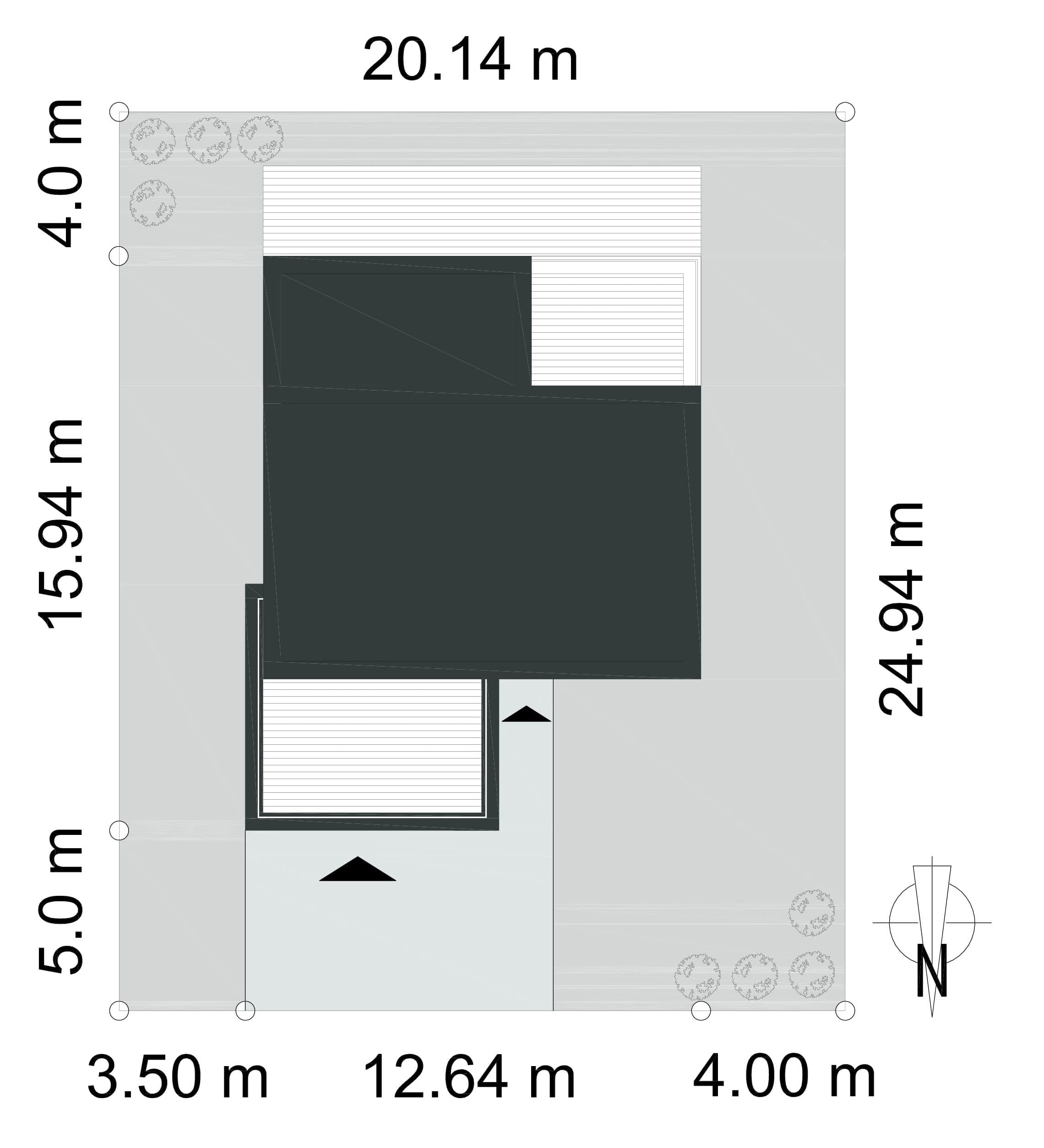 - Minimalne wymiary działki24.94 x 20.14m