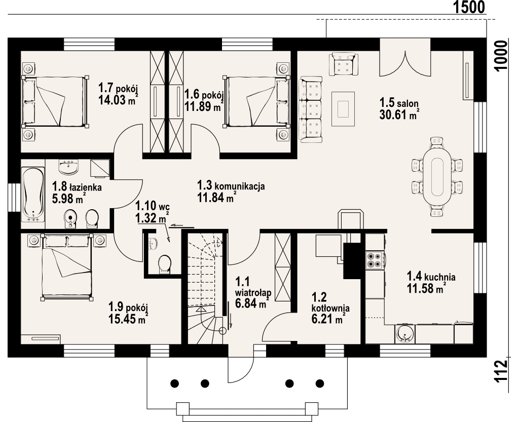 - 1.5 - salon30.61 m²