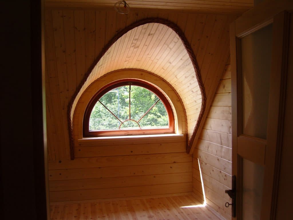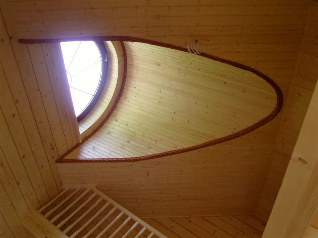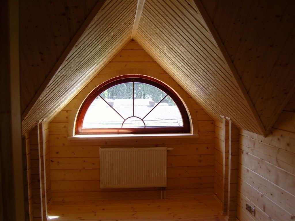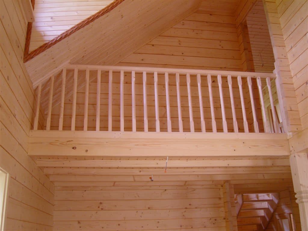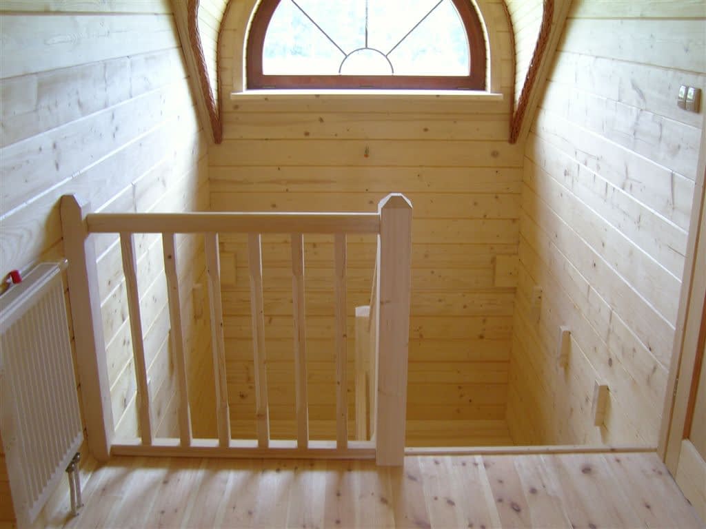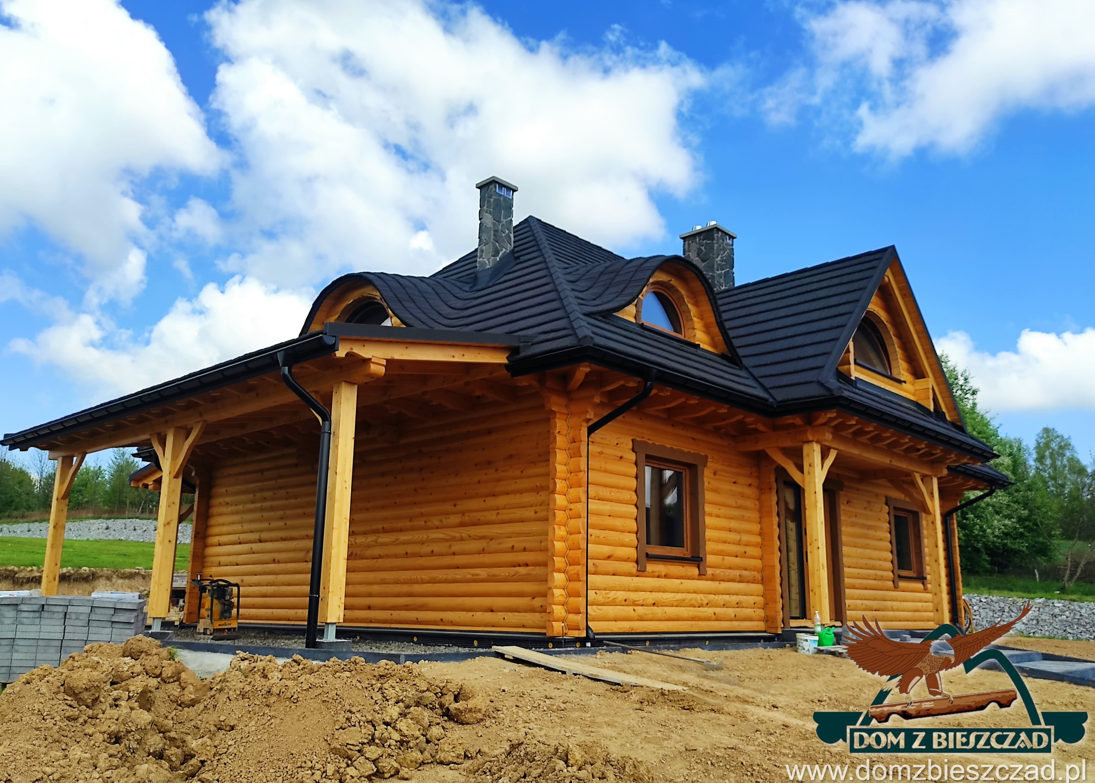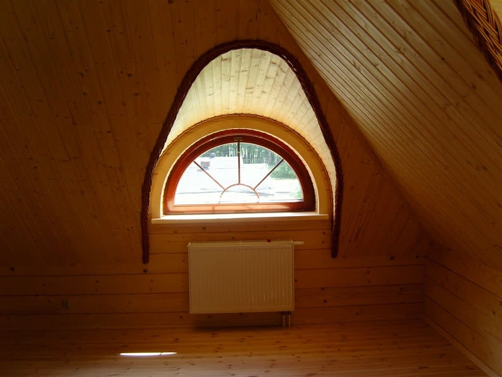 Dom z bali drewnianych. Architektura budynku nawiązuje do tradycji polskiego dworu drewnianego. Duży salon z aneksem kuchennym, kominkiem i wyjściem na zadaszony taras. Pokój, łazienka, wiatrołap, komunikacja, kotłownia. Na poddaszu trzy pokoje, antresola i pustka nad częścią salonu, łazienka i komunikacja.Rzuty