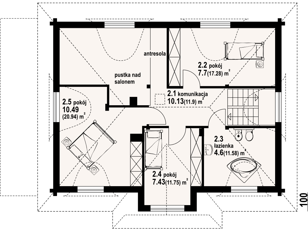 - KondygnacjeParterowy, z poddaszem