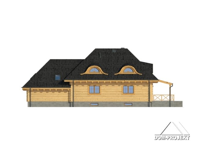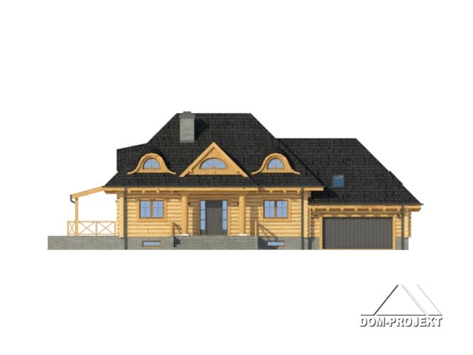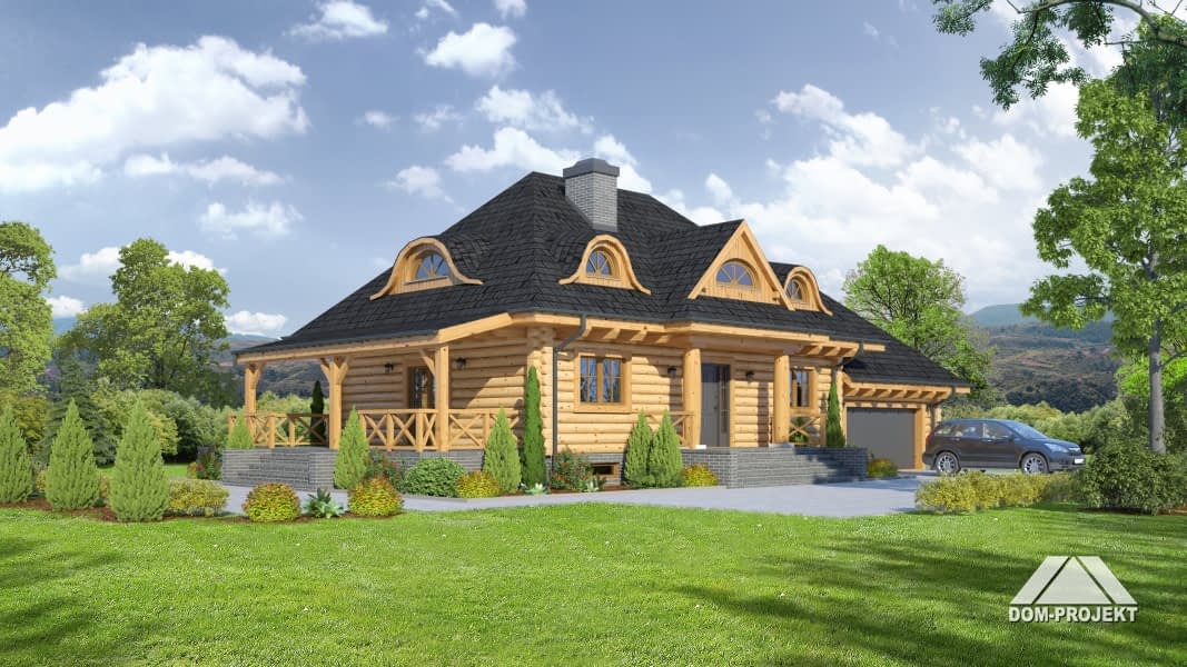 Wygodny dom z bali drewnianych, podpiwniczony. Na parterze duży salon z kominkiem, aneksem kuchennym i wyjściem na zadaszony taras. Pokój. łazienka, wiatrołap i komunikacja. Garaż na dwa samochody. Na poddaszu trzy pokoje, łazienka, pralnia, garderoba i komunikacja.Rzuty