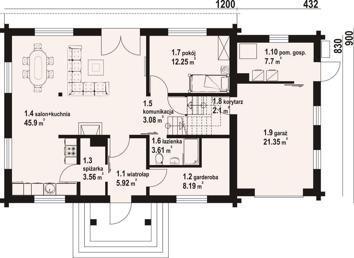 - 1.4 - salon+kuchnia45.9 m²