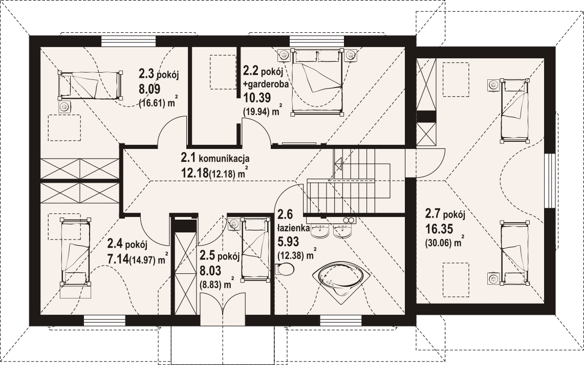 rzutu dachu,