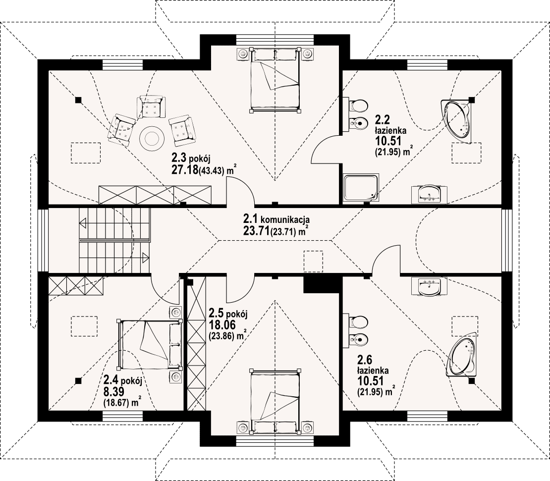 rzutu dachu,