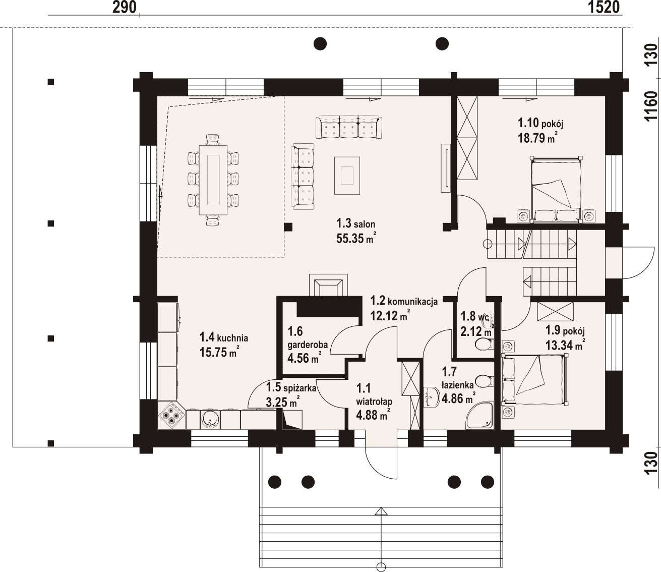 - 1.3 - salon55.35 m²
