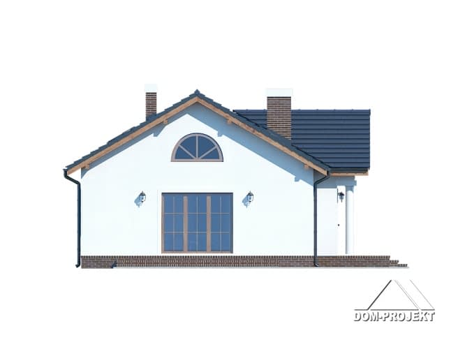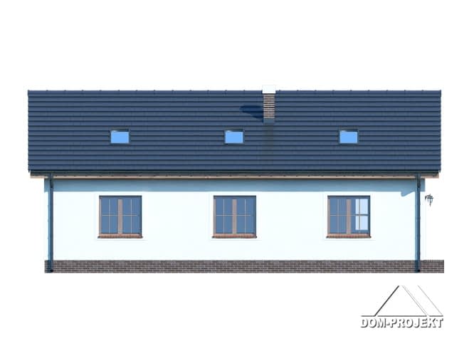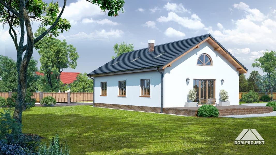 Parterowy dom o funkcjonalnym układzie pomieszczeń. Kominek w salonie z możliwością odzysku ciepła. Niskie koszty realizacji i późniejszego użytkowania domu.Rzuty