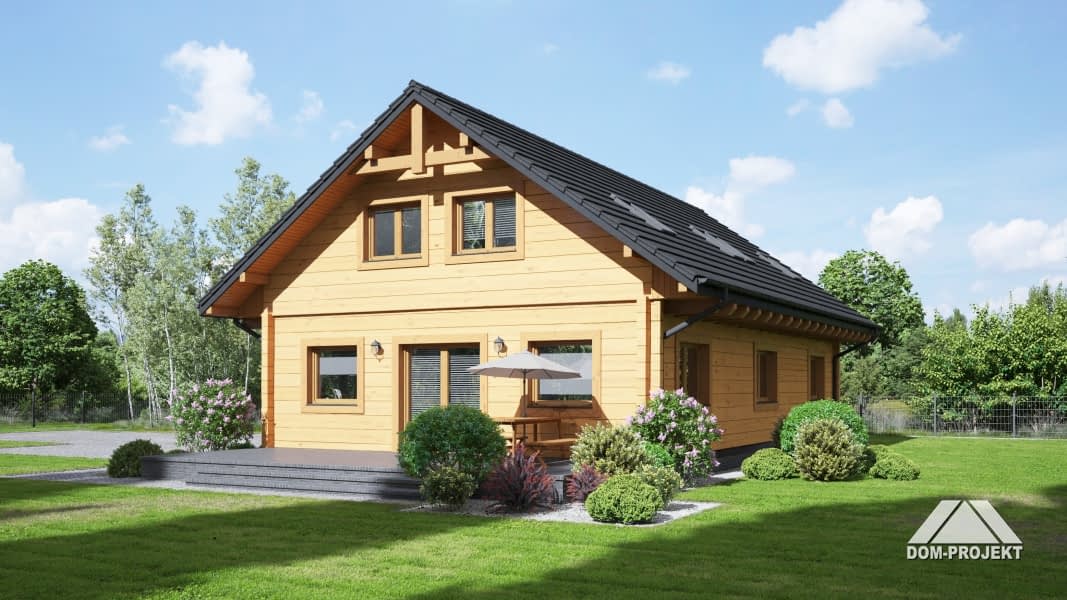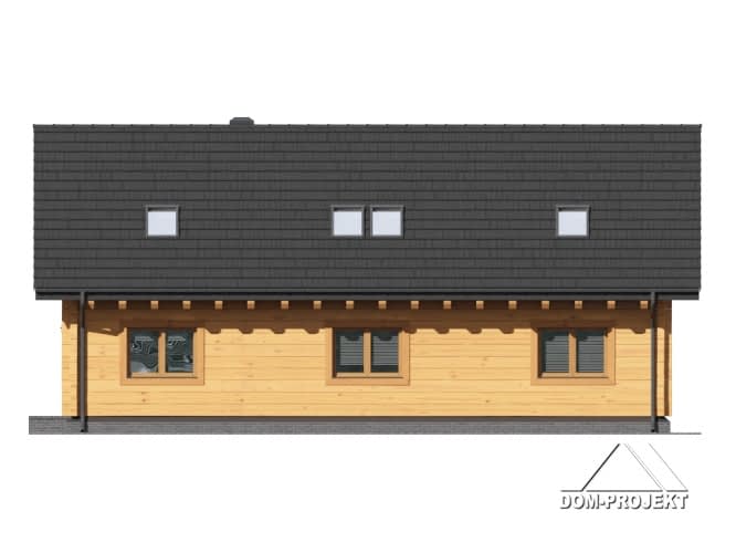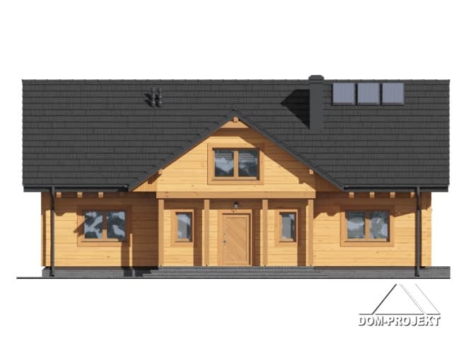 Dom z bali. Podpiwniczony. Duży salon z aneksem kuchennym, kominkiem, schodami na poddasze i wyjściem na taras. Trzy pokoje, dwie łazienki, komunikacja, garderoba i wiatrołap. Na poddaszu dwa pokoje,łazienka i pomieszczenie rekreacyjne. W piwnicach kotłownia, pralnia, łazienka z sauną, piwnica i pomieszczenie rekreacyjne.Rzuty