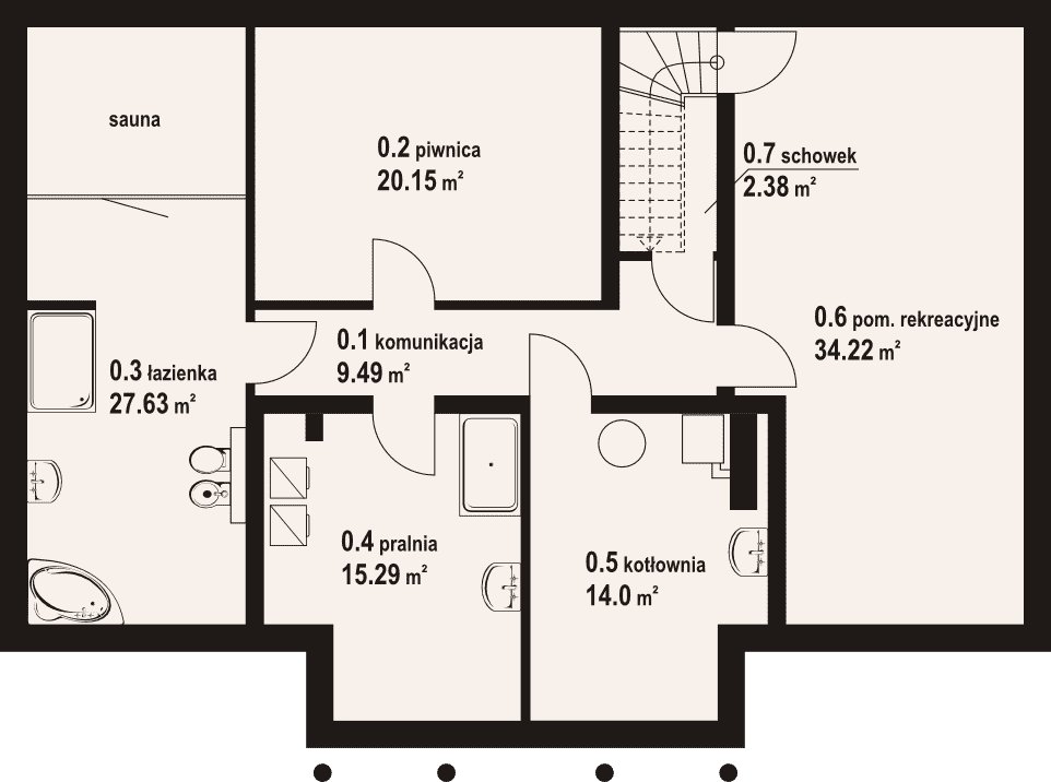 - 0.5 - kotłownia14 m²