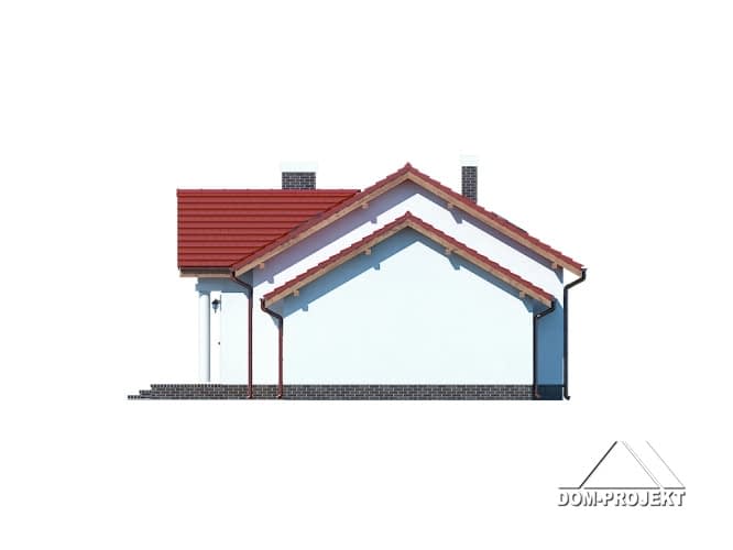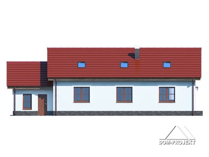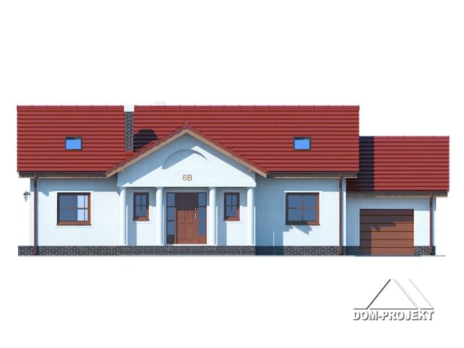 Wygodny, parterowy dom z dobudowanym garażem i dużym strychem. Salon z kominkiem i trzy pokoje. W salonie kominek z możliwością odzysku ciepła. Nad salonem i kuchnią pustka oraz antresola.Rzuty