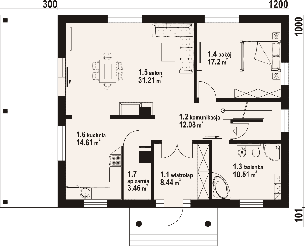opisu architektonicznego zawierającego m.in. opis przyjętych rozwiązań, zestawienia powierzchni (użytkowej, zabudowy, netto), kubatury oraz powierzchni poszczególnych pomieszczeń.