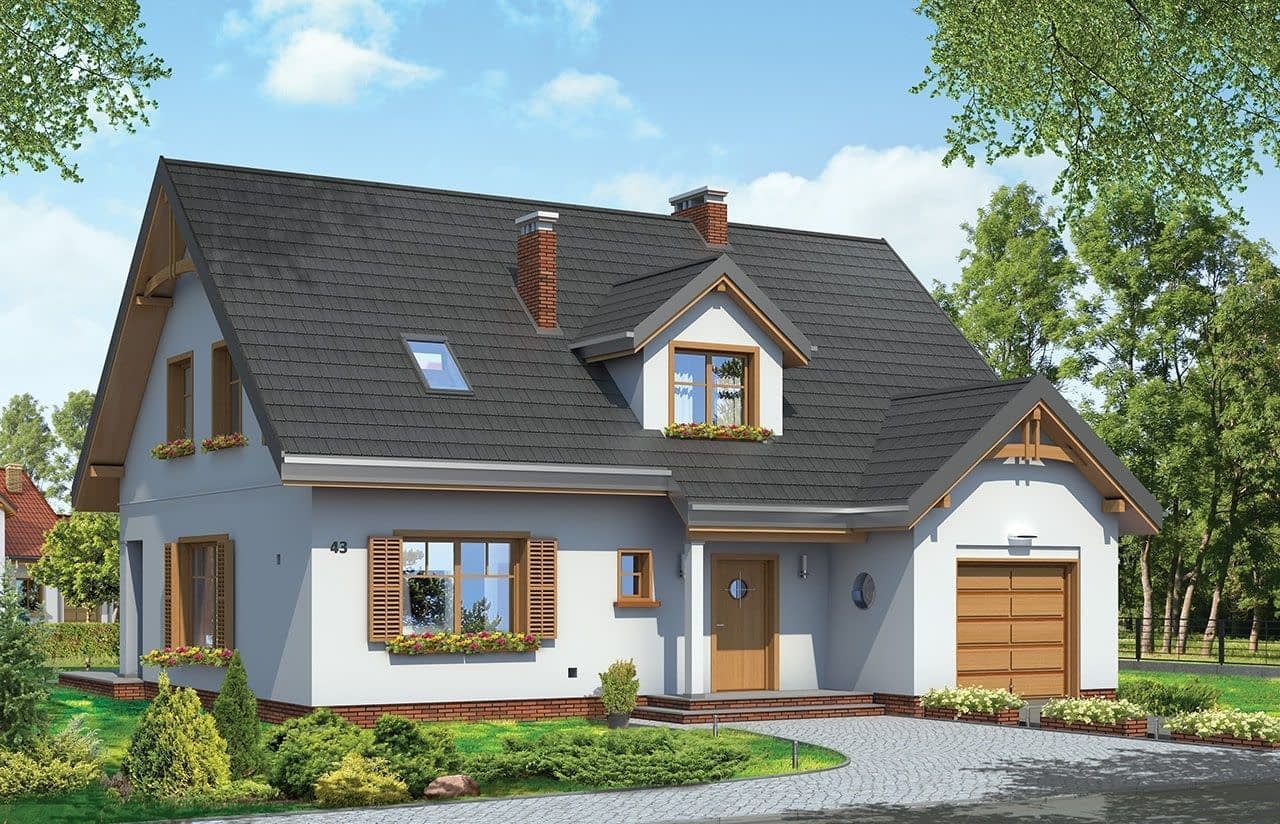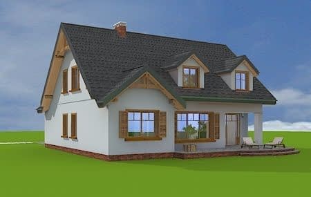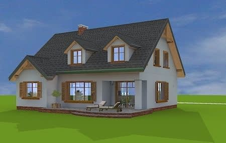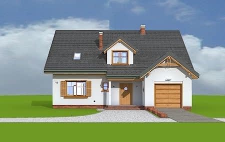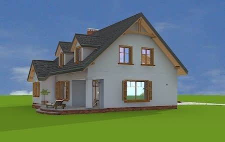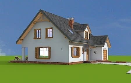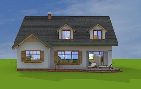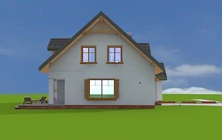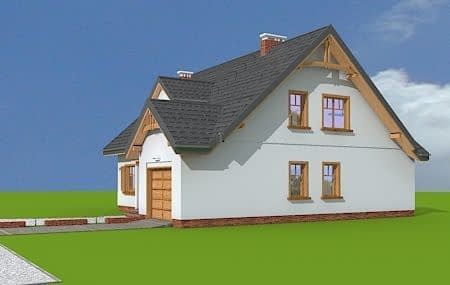 Projekt domu Cukiereczek to sympatyczny domek jednorodzinny dla rodziny cztero-sześcioosobowej. Cukiereczek to parterowy dom z poddaszem użytkowym, przekryty dwuspadowym dachem, częściowo wbudowanym w bryłę garażem. Architektura Cukiereczka stanowi połączenie skromnego, oszczędnego w detale wyglądu zewnętrznego, z jednoczesnym zachowaniem ludzkiej skali bryły. Projekt domu Cukiereczek charakteryzuyje się funkcjonalnym, logicznie zaplanowanym wnętrzem. Na parterze zaprojektowano obszerny salon z częściowo oddzieloną jadalnią, z której jest połączenie z półotwartą kuchnią i wyjście do podcienia ogrodowego i na taras. W salonie przewidziano miejsce na wbudowany w ścianę kominek. Z salonu widoczne są także częściowo schody, zaczynające swój bieg w holu - tuż przy wejściu. Na parterze zaplanowano też dodatkowy pokój - gabinet lub sypialnię gościnną, oraz część gospodarczą, z garażem i kotłownią. Na poddaszu zaprojektowano trzy duże sypialnie, w tym sypialnię rodziców z dużą garderobą, oraz bardzo ładną rodzinną łazienkę z kącikiem na pralnię i suszarnię. Pracownia posiada wersję odbicia lustrzanego projektu domu Cukiereczek.
