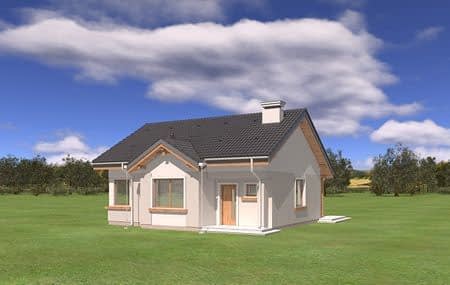 Projekt domu Cypisek to propozycja niewielkiego domku jednorodzinnego dla 3-4osobowej rodziny. Cypisek to dom o prostokątnej bryle, przekrytej dwuspadowym, symetrycznym dachem. Prostą bryłę ozdobiono ciekawymi detalami, jak zadaszony wykusz kuchenny, narożny podcień wejściowy z kolumienką, narożne okna sypialni, czy podcień ogrodowy nad tarasem. Dobrane ze smakiem, nowoczesne materiały i kolorystyka w połączeniu z tradycyjną bryłą dają niepowtarzalny efekt. Wnętrze domku to trzypokojowe, wygodne mieszkanie, z dodatkowym przedsionkiem wejściowym i kotłownią. Salon wzbogacono o narożny kominek widoczny z każdego miejsca części dziennej i szerokie przeszklone drzwi otwierające dom na taras i ogród. Nieużytkowy strych nad parterem można dość łatwo zaadaptować na dodatkowe poddasze. Pracownia posiada także projekt Cypisek w odbiciu lustrzanym. Zapraszamy do zapoznania się z pełną ofertą pracowni MG Projekt: projekt domu Cypisek, projekt domu Cypisek 2, projekt domu Cypisek 3, projekt domu Cypisek 4.
