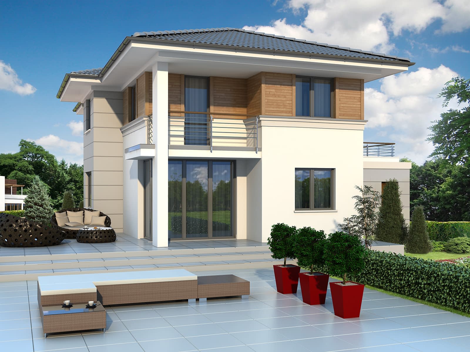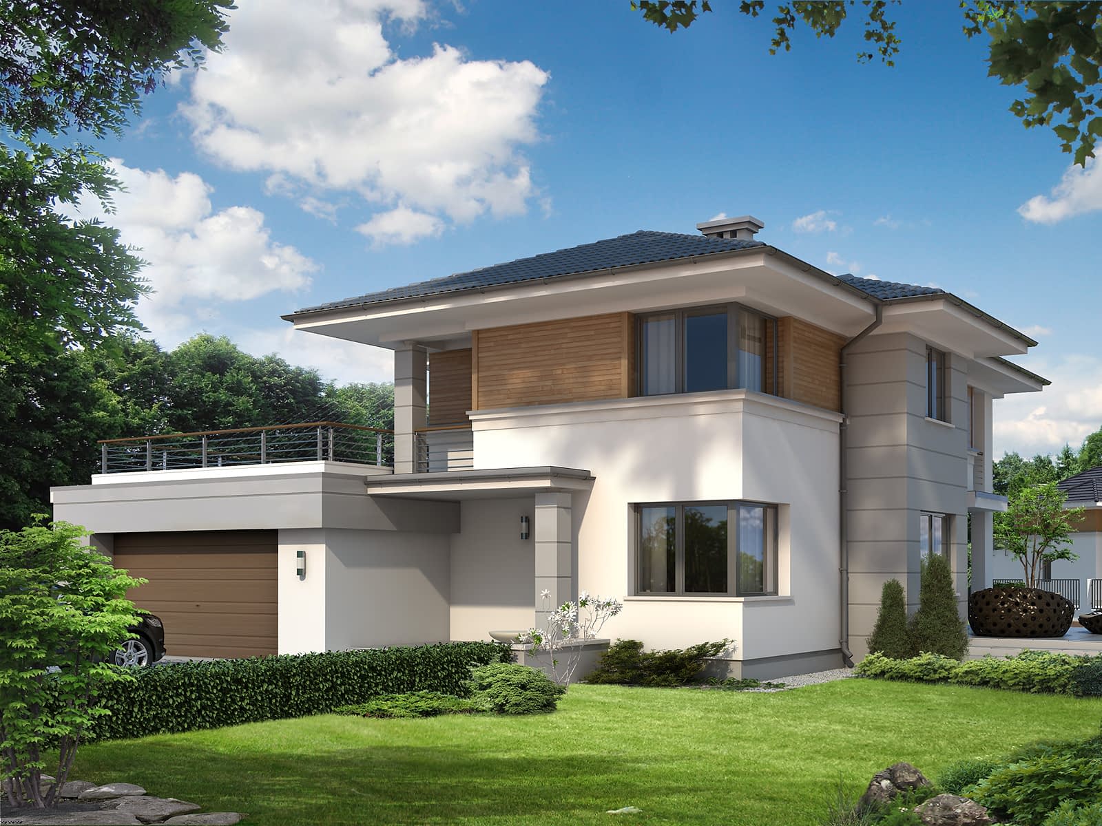 Ściany: 3-warstwowe - bloczki z betonu komórkowego, Stropy: żelbetowe, wylewane, Dach: dachówka ceramiczna CREATON,Rzuty