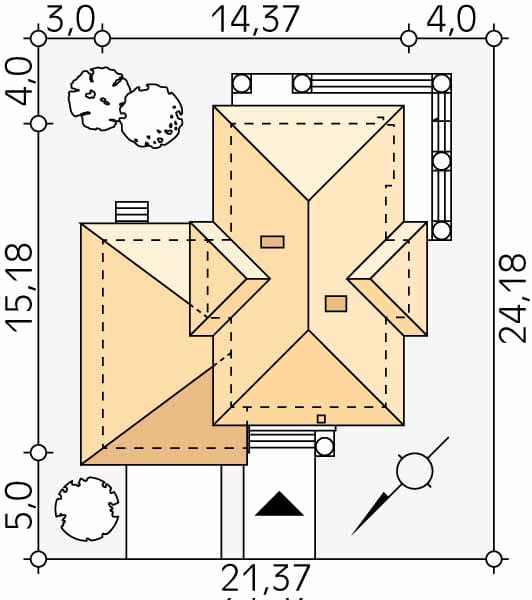 - Minimalne wymiary działki24.18 x 21.37m