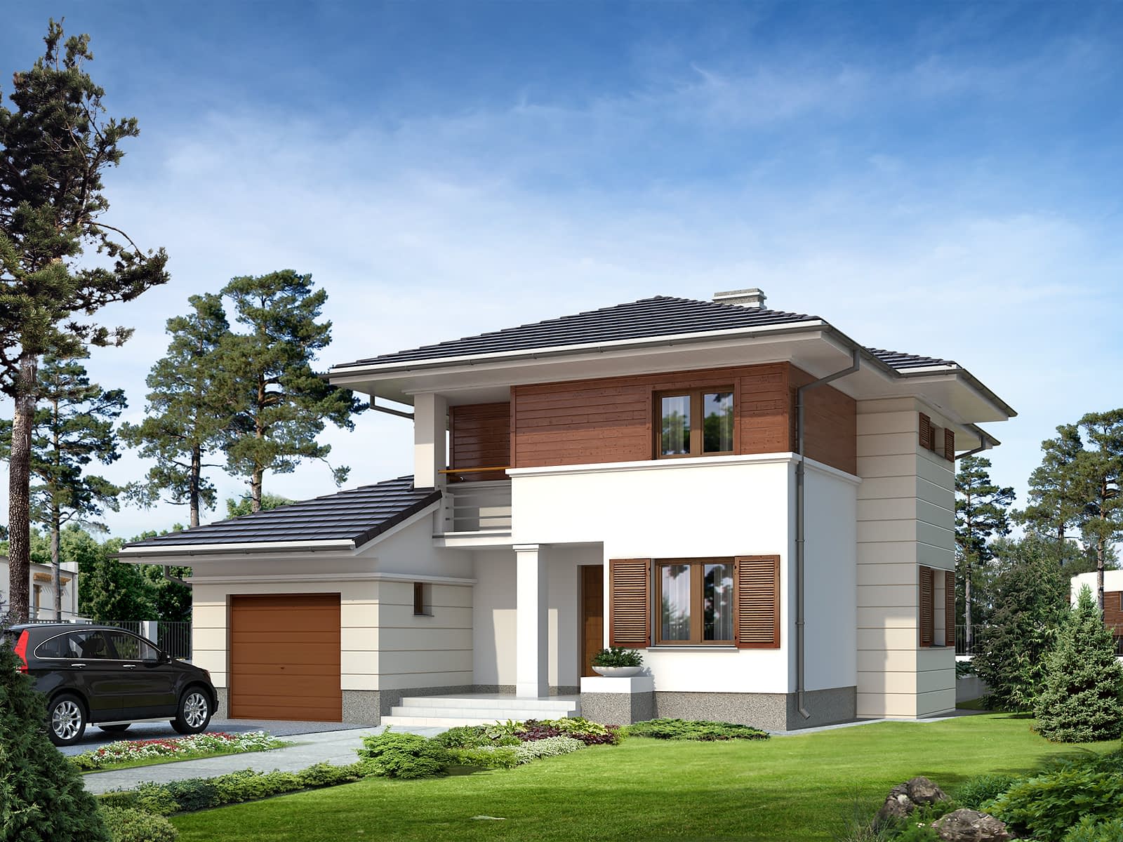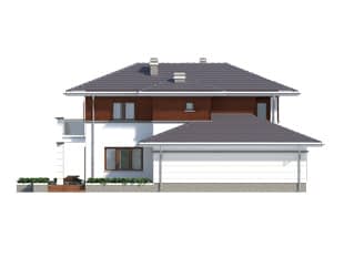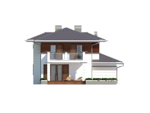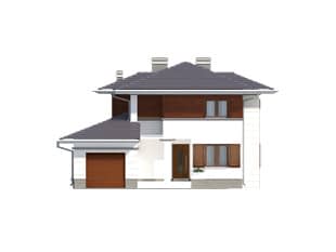 Dom jednorodzinny, dwukondygnacyjny z garażem, niepodpiwniczony. Na parterze zaprojektowano jednoprzestrzenną część dzienną łączącą kuchnię, jadalnię i pokój dzienny oraz dodatkowy pokój. Na piętrze znajdują się trzy sypialnie z wyjściami na balkony, duża łazienka i garderoba. Dwie pełne kondygnacje dają możliwość łatwej aranżacji pomieszczeń także na piętrze.Konstrukcja