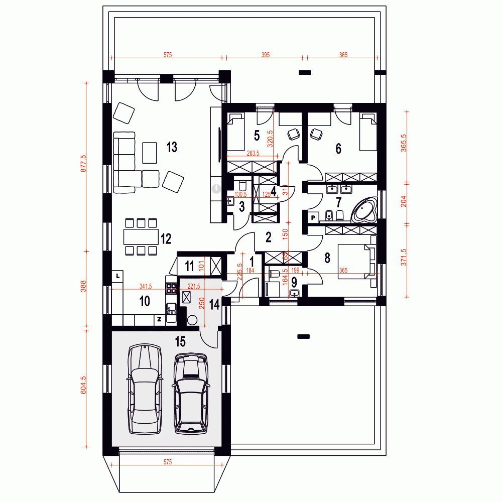 - Szerokość domu14.8 m