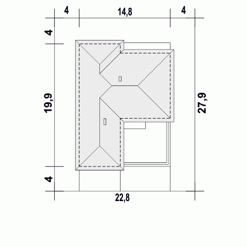 - Minimalne wymiary działki27.9 x 22.8m