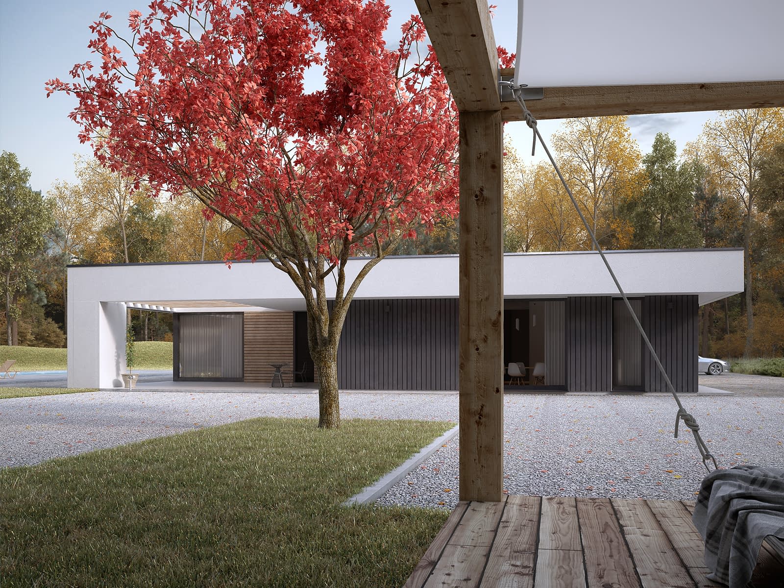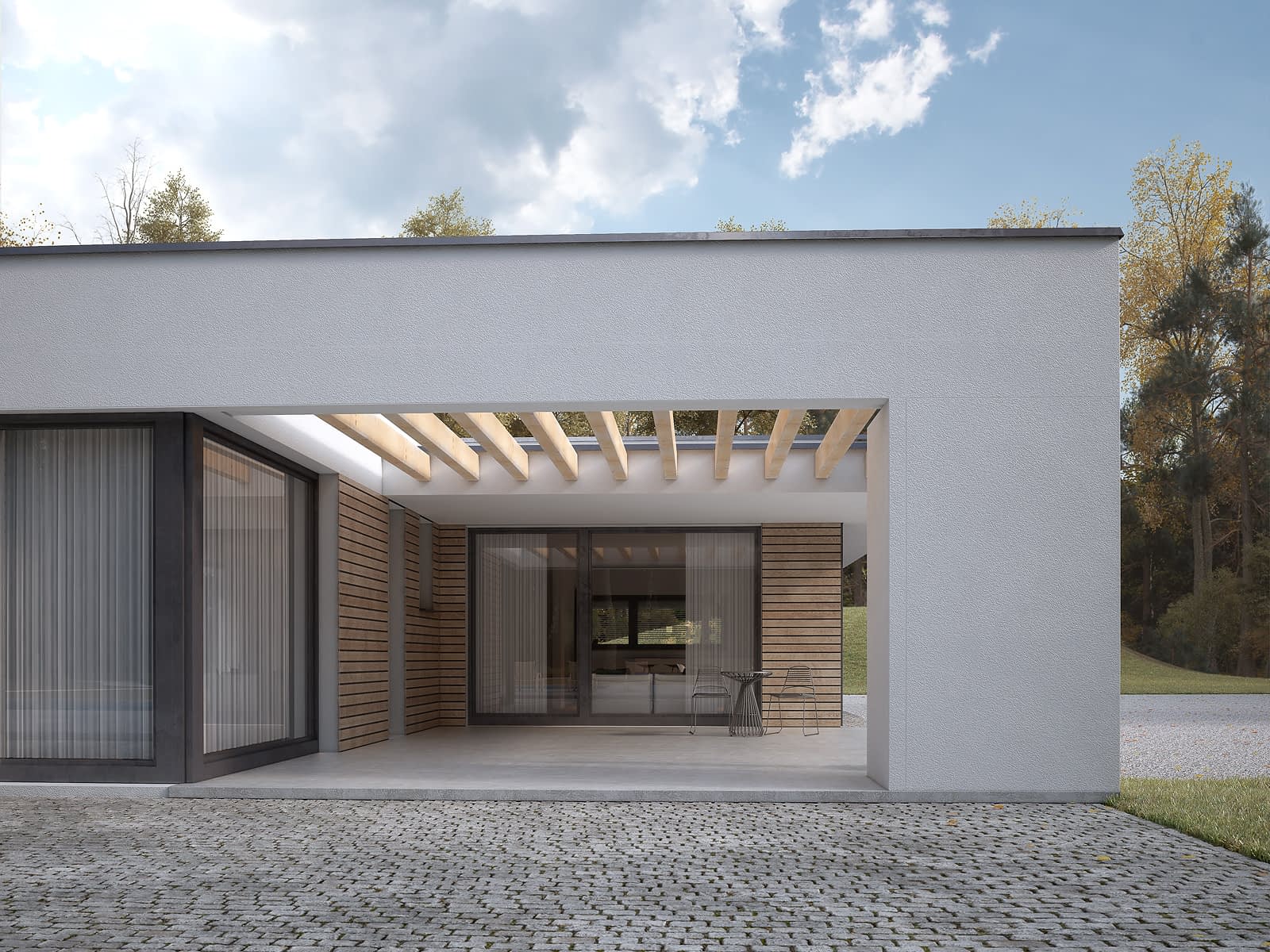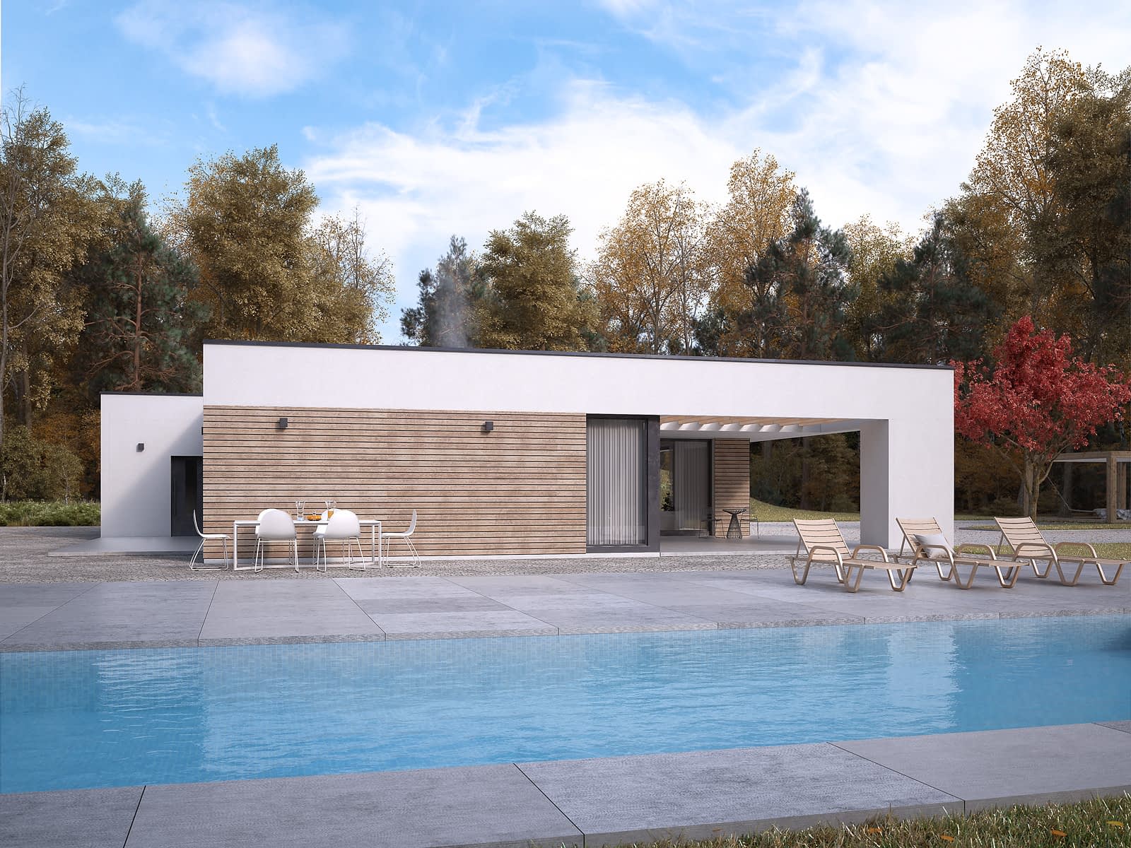 Projekt domu Cytrus 4 zasługuje na uwagę pod względem estetycznym i funkcjonalnym. Przestronna część dzienna z dużymi przeszkleniami, płynnie łączy wnętrze domu z tarasem zewnętrznym. W centralnej części znajduje się jadalnia, która została wyeksponowana na tle dużego okna. Przestronna kuchnia posiada dodatkowo dużą spiżarnię i wyspę, która stanowi jednocześnie miejsce do spożywania posiłków. W części nocnej, oddzielonej funkcjonalnie od pomieszczeń dziennych, znajdują się trzy sypialnie, garderoba, rodzinna łazienka oraz pralnia. Sypialnia rodziców wyposażona jest w oddzielną garderobę i wygodną kompaktową łazienkę. W projekcie Cytrus 4 nie zapomniano o wygodnym dwustanowiskowym garażu dostępnym z przestronnego przedsionka. W garażu znajduje się również przejście do kotłowni połączonej z pomieszczeniem gospodarczym stanowiącym zaplecze ogrodu z bezpośrednim dostępem z zewnątrz.Konstrukcja
