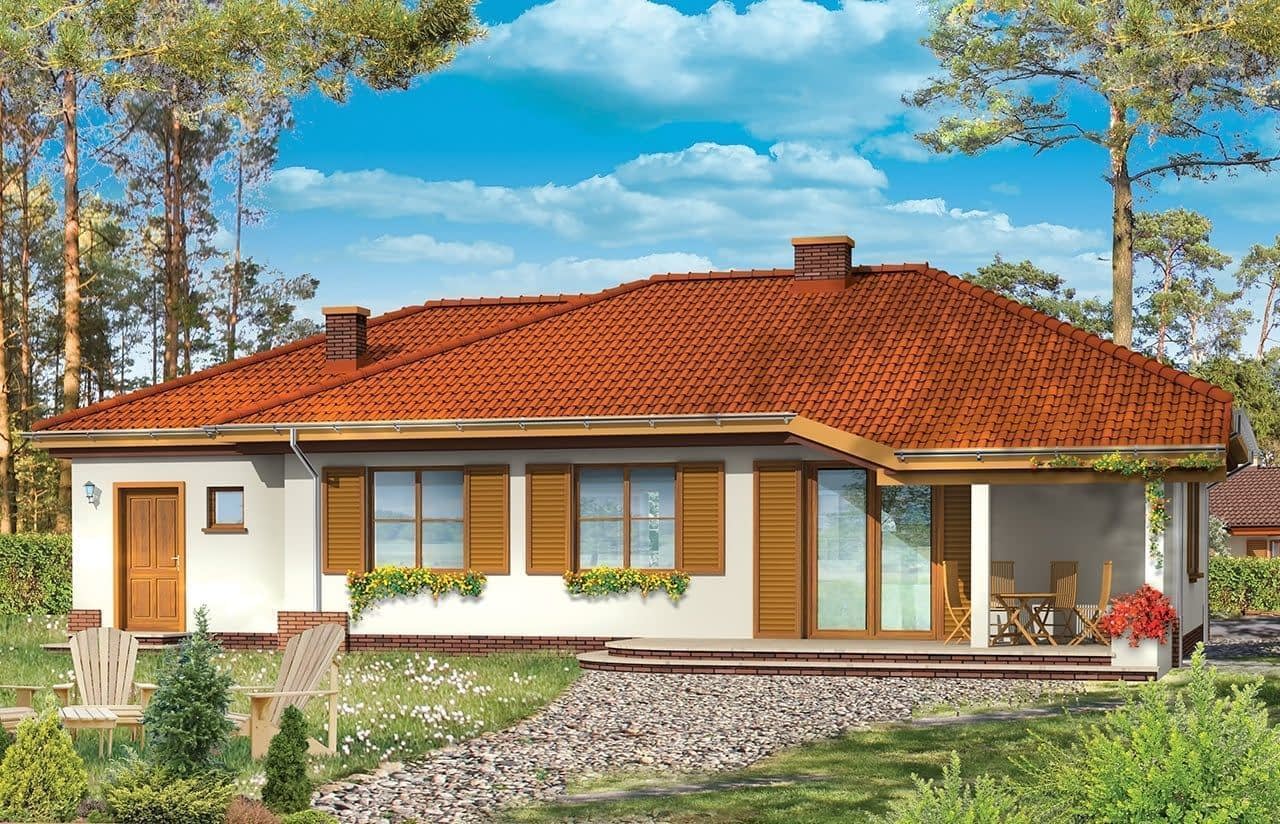 Projekt domu Cztery Kąty 2 jest wariantem projektu Cztery Kąty - tym razem z pojedynczym garażem. Propozycja domu dla mniej zmotoryzowanych, ale przede wszystkim dla inwestorów mających węższą działkę, przez co mniej miejsca na sam dom. Część mieszkalna jest identyczna jak w podstawowym projekcie, jedynie garaż uległ zmniejszeniu. Zaprojektowany został również strych nad częścią domu, który można wykorzystać jako pomieszczenie magazynowe. Projekt jest propozycją dla 4-5 osobowej rodziny lubiącej życie na jednym poziomie, blisko ogrodu. Zapraszamy do zapoznania się z pełną ofertą pracowni MG Projekt: projekt domu Cztery Kąty w odbiciu lustrzanym oraz kilka wersji: z garażem jednostanowiskowym (projekt domu Cztery kąty 2), z poddaszem (projekt domu Cztery kąty 3), bez garażu (projekt domu Cztery kąty 4).
