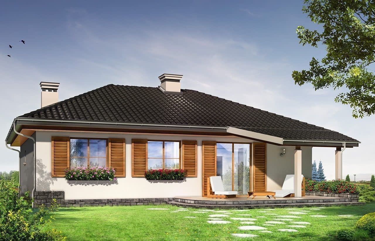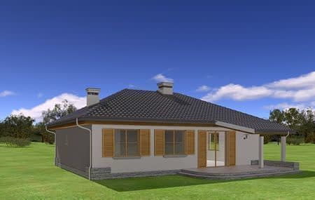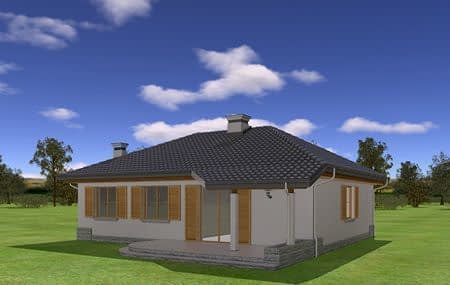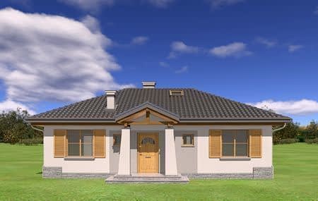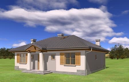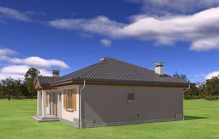 Projekt domu Cztery kąty 4 stworzono z myślą o rodzinie trzy-czteroosobowej. Cztery Kąty 4 to budynek parterowy, przekryty czterospadowym dachem, z zadaszonym portykiem wejściowym i podcieniem tarasowym od strony ogrodu. Zwarta prostokątna bryła domu jest łatwa w budowie i niedroga w eksploatacji. Nad stropem nad parterem kryje się strych do wykorzystania na magazyn, co rekompensuje brak innych pomieszczeń gospodarczych w domu. Spokojna, tradycyjna forma architektoniczna budynku wpisze się doskonale w każdy podmiejski krajobraz. Domek jest przytulny i proporcjonalny. Wnętrze domu Cztery Kąty 4 podzielono na część dzienną z salonem, holem i półotwartą kuchnią, oraz część nocną - z trzema sypialniami, łazienką i niewielkim pomieszczeniem kotłowni. Wejście do kotłowni można zaprojektować z zewnątrz - wówczas można dom ogrzewać kotłem na paliwo stałe. Z pokoju dziennego wychodzi się szerokimi drzwiami na częściowo zadaszony taras do ogrodu. Pracownia posiada wersję odbicia lustrzanego projektu Cztery Kąty 4. Zapraszamy do zapoznania się z pełną ofertą pracowni MG Projekt: projekt domu Cztery Kąty w odbiciu lustrzanym oraz kilka wersji: z garażem jednostanowiskowym (projekt domu Cztery kąty 2), z poddaszem (projekt domu Cztery kąty 3), bez garażu (projekt domu Cztery kąty 4).