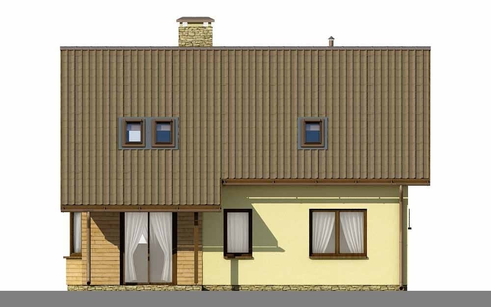 Prezentowany dom jest przeznaczony jest dla czteroosobowej rodziny i ewentualnie seniora rodu. Projekt dwukrotnie prezentowany w katalogach pokonkursowych MURATORA na Dom Dostępny, co zaowocowało kilkudziesięcioma realizacjami na terenie całego kraju. Szeroki okap dachu chroni taras przed zbytnim nasłonecznieniem jak również umożliwia korzystanie z niego podczas deszczu. Dom posiada wygodny układ funkcjonalny z podziałem na część dzienną obejmującą kuchnię, jadalnię, pokój dzienny i mniejszą łazienkę oraz część nocną z pokojami sypialnymi i większą łazienką. Możliwe jest oddzielenie kuchni od pokoju dziennego. Od strony sypialni można dobudować garaż lub wiatę na samochód. Możliwe jest ogrzewanie domu kominkiem w oparciu o system kanałów rozprowadzających ciepłe powietrze i centrali rozdzielczej.Konstrukcja