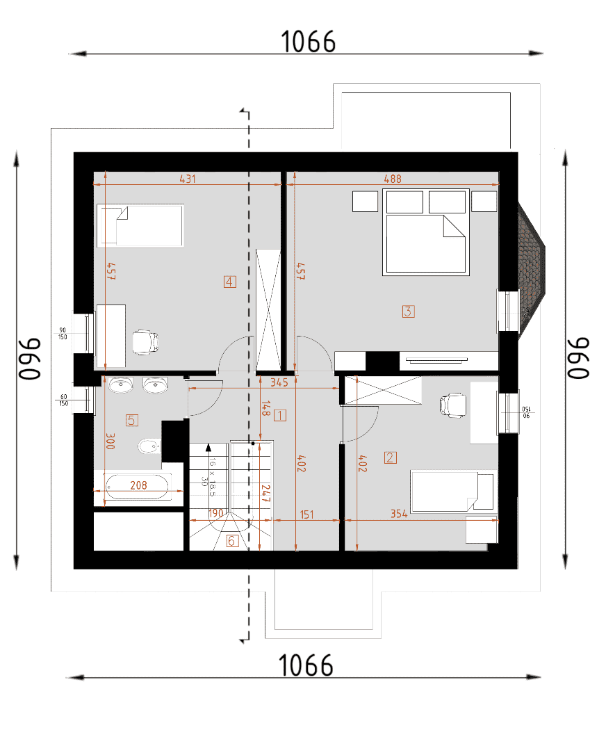 - rzuty wszystkich kondygnacji (np. parter, piwnica, piętro) – rozmieszczenie i wymiary wszystkich pomieszczeń, rozmieszczenie i wielkość otworów okiennych i drzwiowych, rozmieszczenie kominów, sugerowana aranżacja wnętrz.
