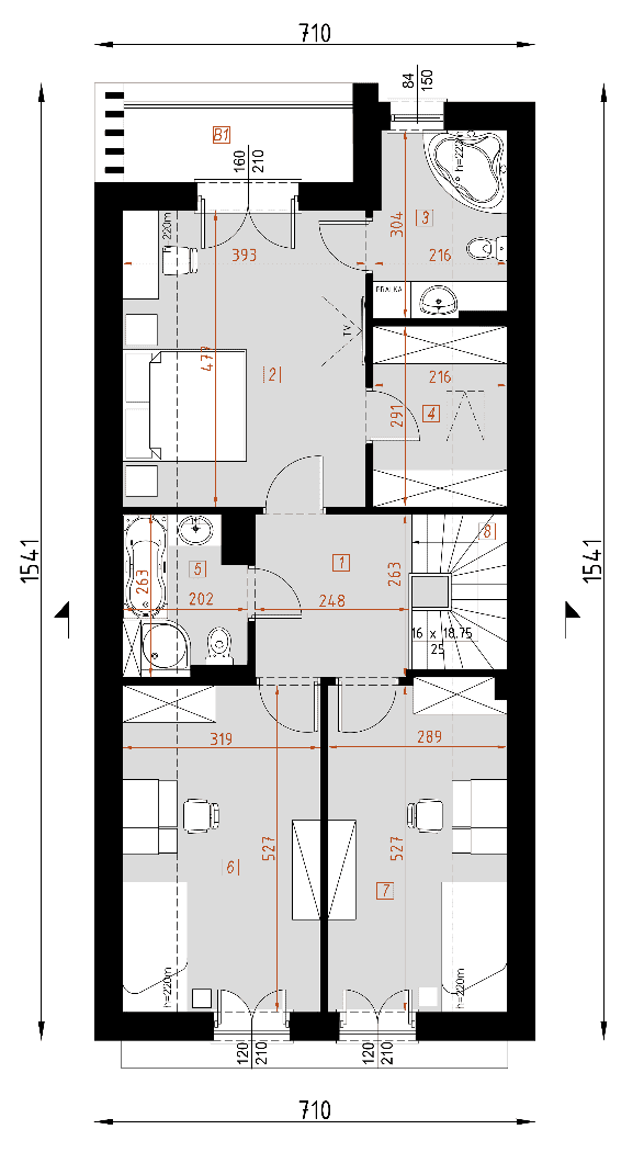 - Wysokość domu8 m