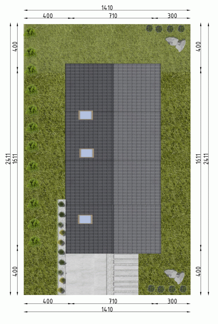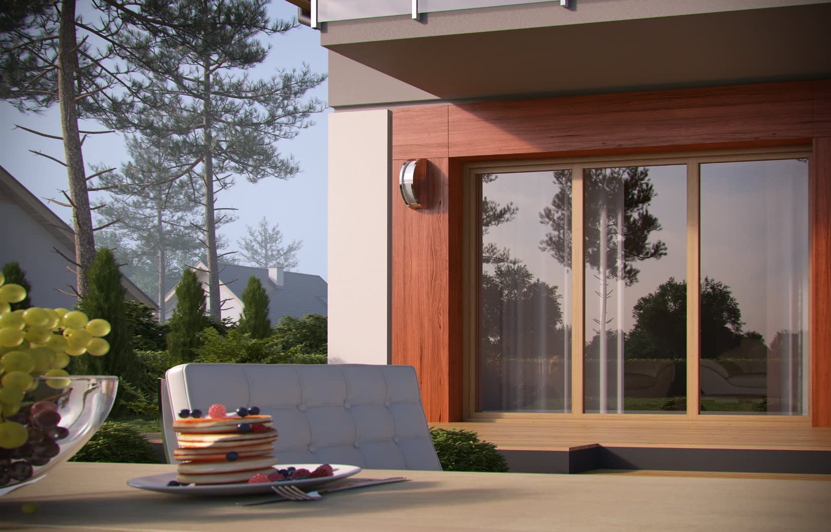 - elewacje (frontowa, dwie elewacje boczne, ogrodowa) – dokładny wygląd domu z każdej strony.