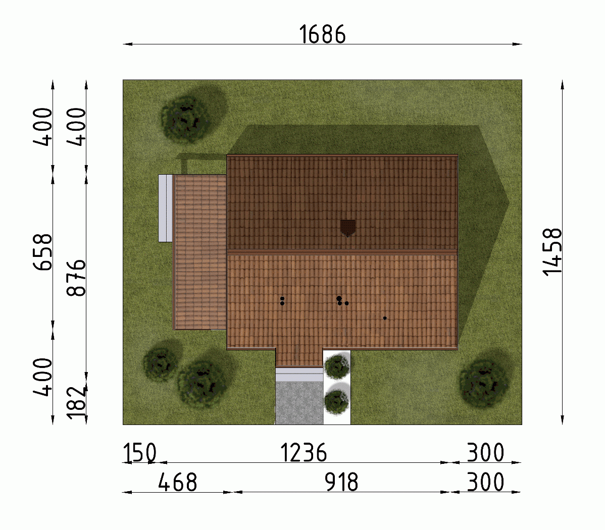 - Minimalne wymiary działki14.58 x 16.86m