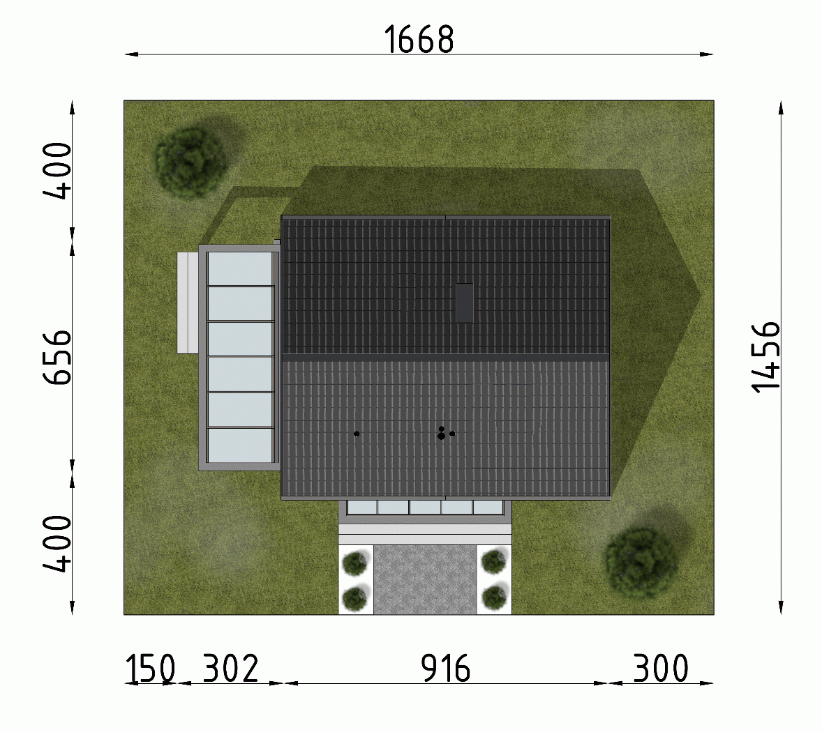 - Minimalne wymiary działki14.56 x 16.68m