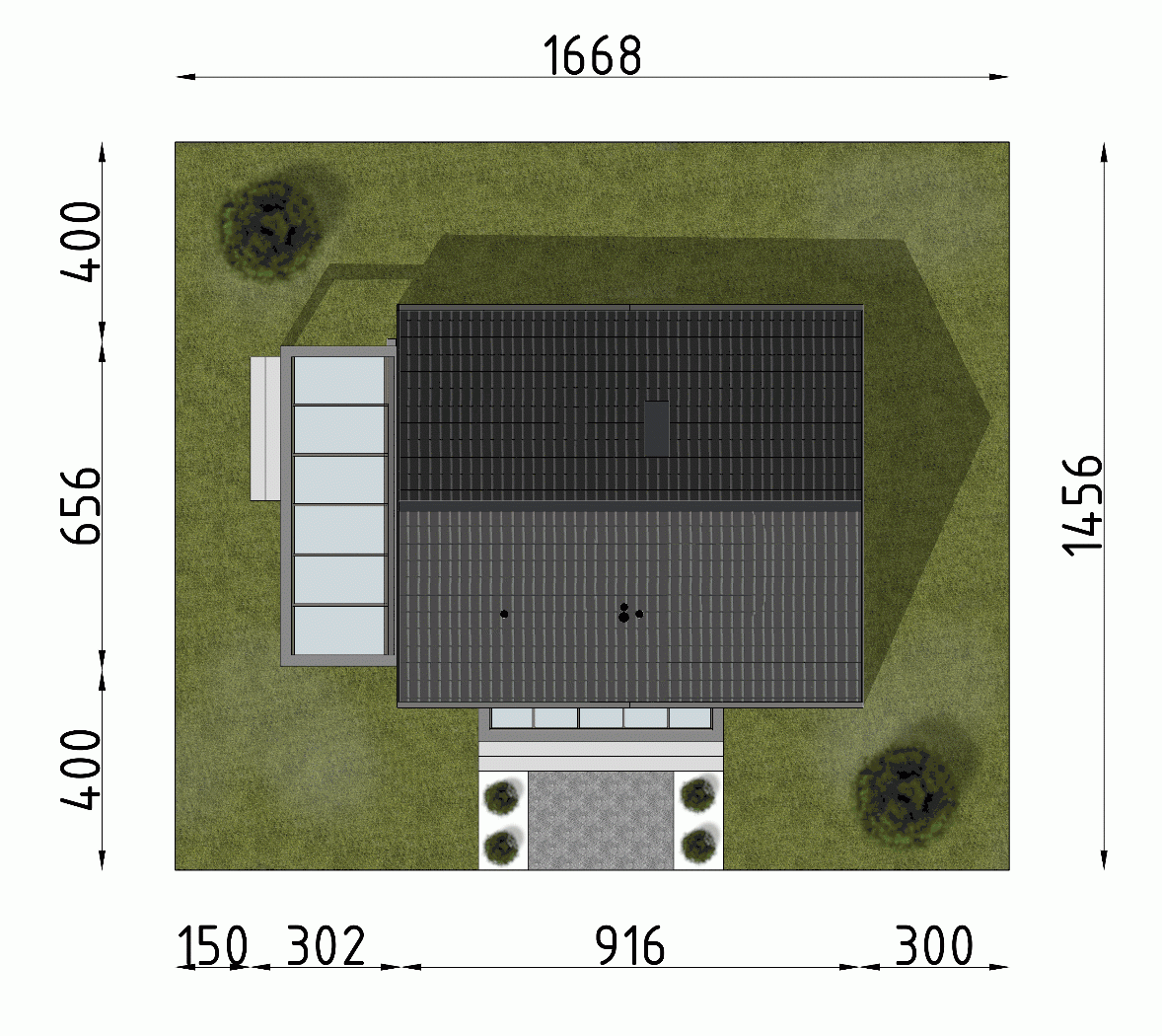- elewacje (frontowa, dwie elewacje boczne, ogrodowa) – dokładny wygląd domu z każdej strony.