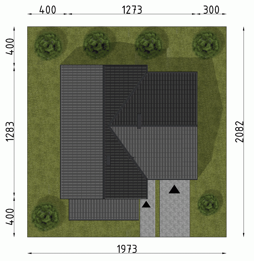 - elewacje (frontowa, dwie elewacje boczne, ogrodowa) – dokładny wygląd domu z każdej strony.