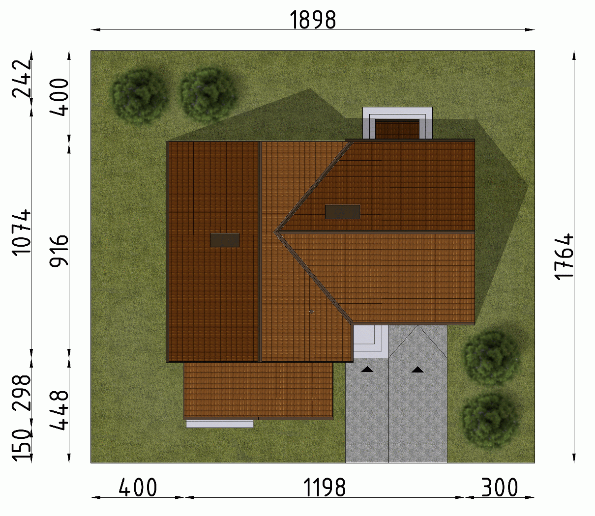 - rzut dachu – wymiary dachu, kąt nachylenia wszystkich połaci dachu, rozmieszczenie okien połaciowych, lukarn, kominów.