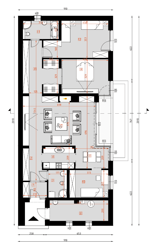 - rzuty wszystkich kondygnacji (np. parter, piwnica, piętro) – rozmieszczenie i wymiary wszystkich pomieszczeń, rozmieszczenie i wielkość otworów okiennych i drzwiowych, rozmieszczenie kominów, sugerowana aranżacja wnętrz.