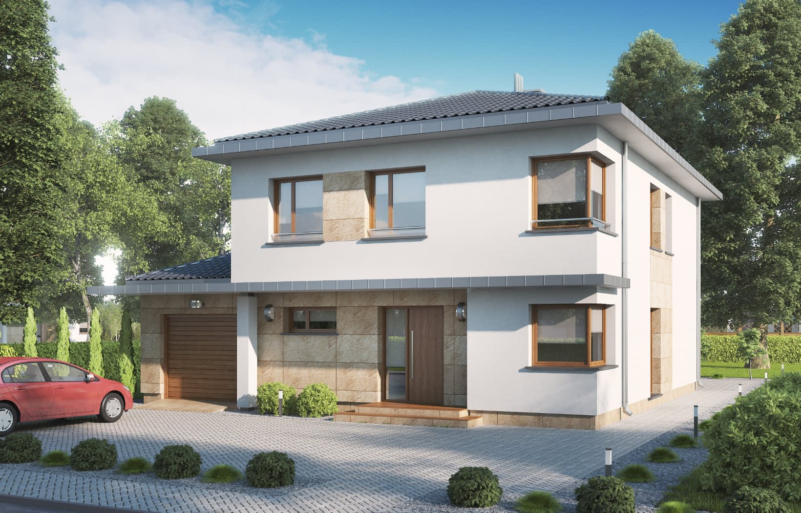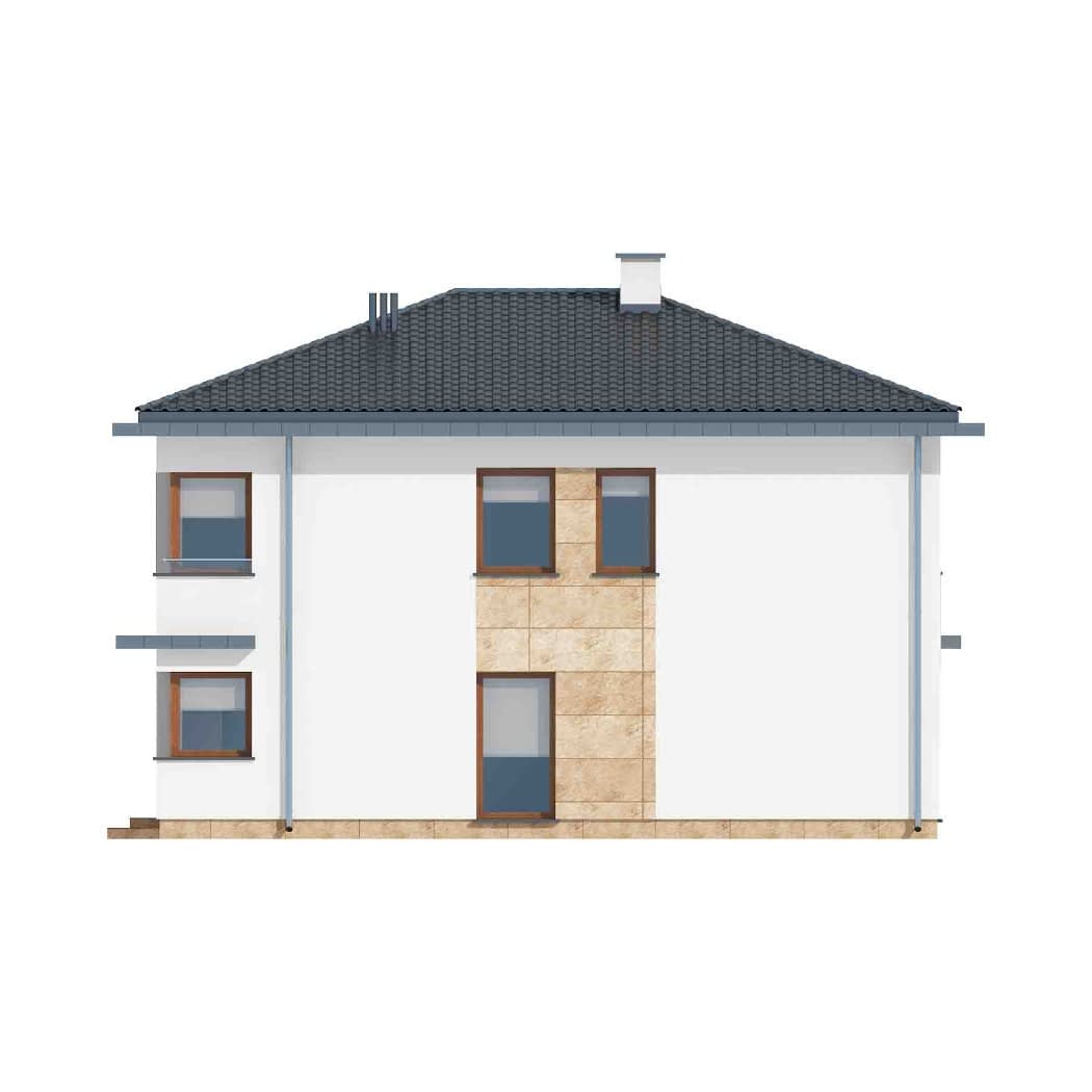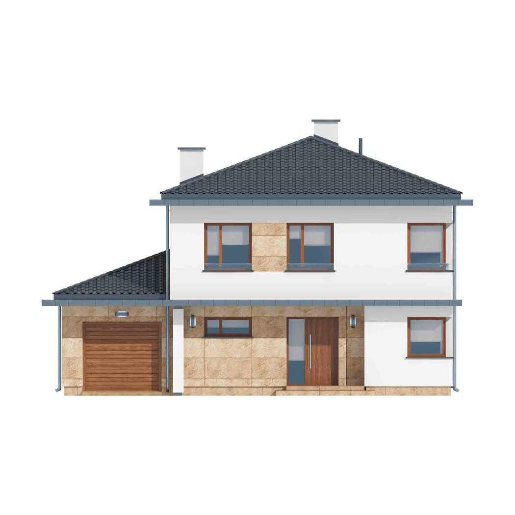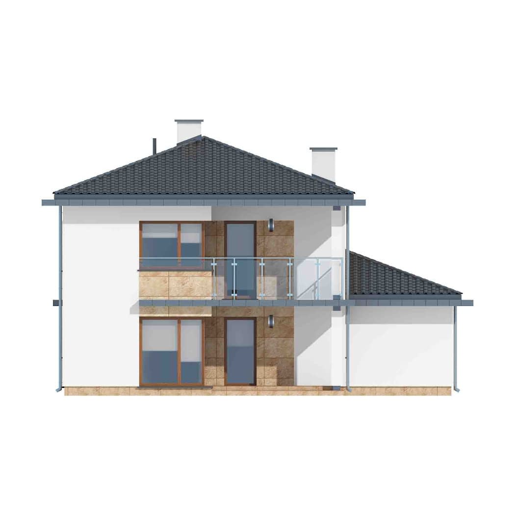 - elewacje (frontowa, dwie elewacje boczne, ogrodowa) – dokładny wygląd domu z każdej strony.